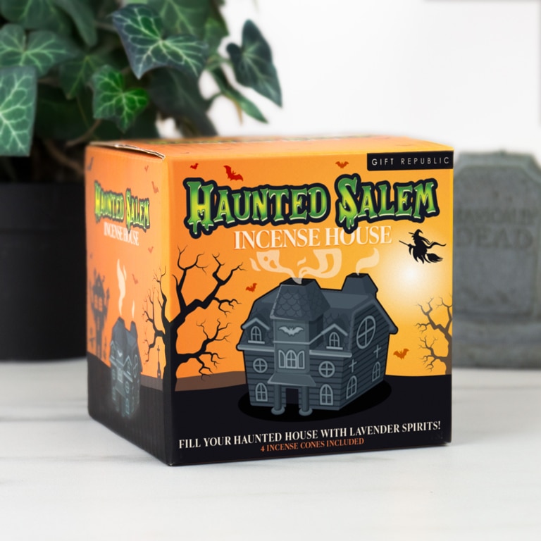 Welkom in Salem! De Haunted House wierookhouder van Gift Republic is een wierookhouder in de vorm van een spookachtig huis. Steek een lavendel wierookkegel aan en kijk hoe de rook spookachtig uit de kleine raampjes drijft – een griezelig visueel effect! Perfect voor Halloween-decor, het hele jaar door gothic sfeer of gewoon voor als je van alles houdt wat haunted en mystiek is. Een uniek cadeau voor heksenliefhebbers en horror-fans!