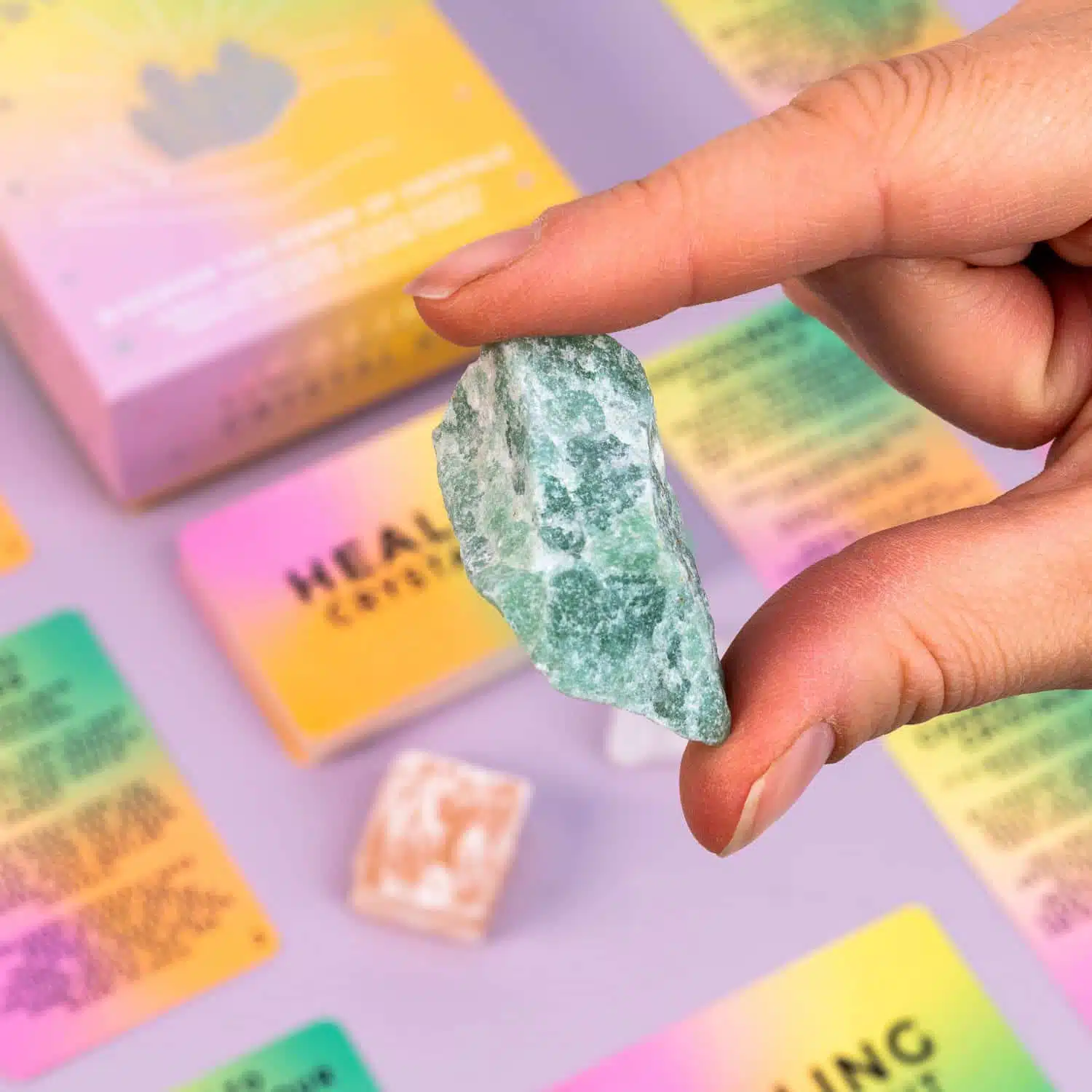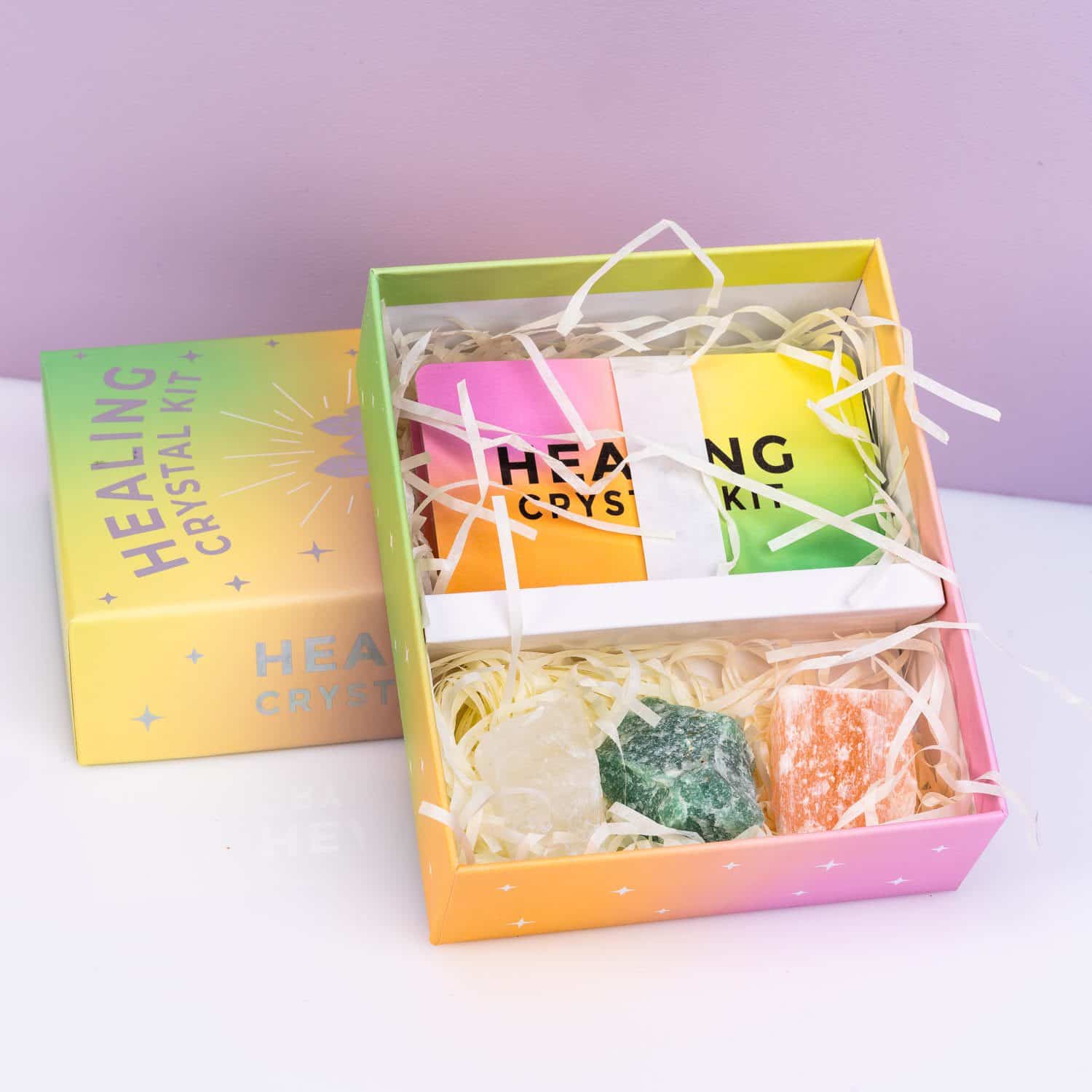 Heb je interesse in kristallen en hun helende krachten? Dan is de Helende kristallenset met drie stenen van Gift Republic iets voor jou. In de set zitten drie kristallen: heldere kwarts, groene aventurijn en oranje seleniet. Daarnaast ontvang je ook vijftig begeleidende kaarten waarin wordt uitgelegd hoe je de kristallen kunt gebruiken, hoe ze wereldwijd al eeuwen worden gebruikt vanwege hun helende werking en meer interessante feiten.