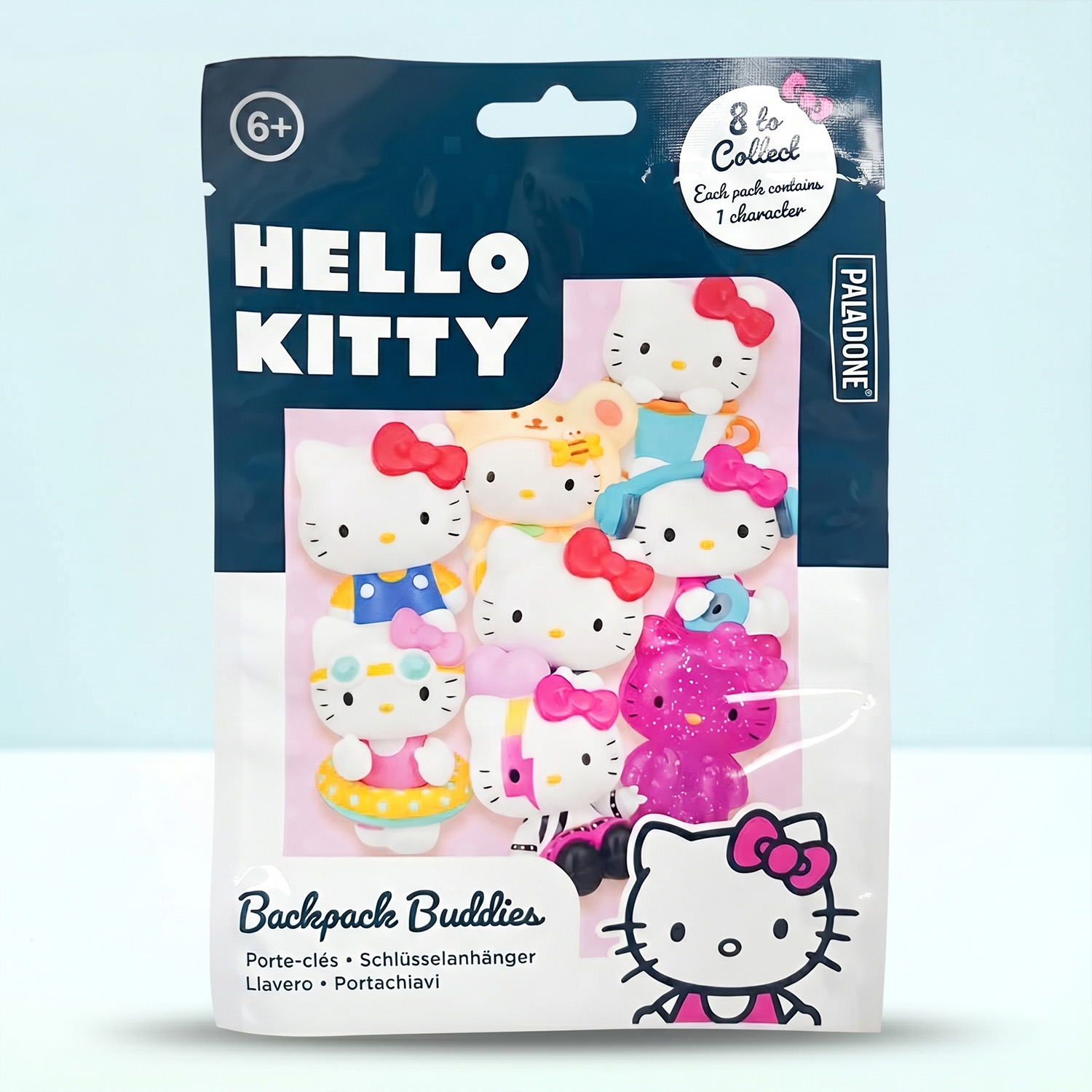 Geef je tas een schattige upgrade met de Hello Kitty Backpack Buddy. Elk verrassingszakje bevat één verrassingsfiguurtje van een van de acht Hello Kitty-personages, inclusief een zeldzame chaser. Bevestig het figuurtje met de sleutelhanger aan je tas of rugzak en neem je favoriete personage overal mee naartoe. Verzamel ze allemaal!