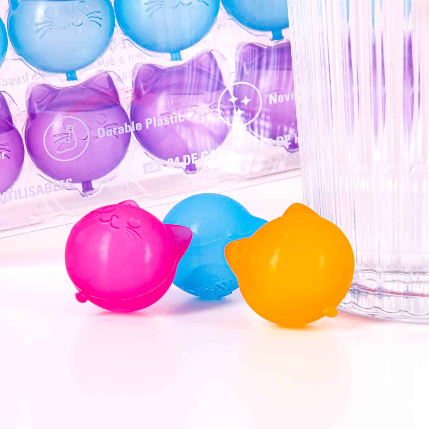Ze verkoelen je drankje zonder het te verdunnen en voegen een grappig detail toe aan je zomerse cocktail: de Herbruikbare kat ijsblokjes (set van 24) van Kikkerland. Deze ijsblokjes zien er namelijk uit als het koppie van een kat! Ze zijn speciaal ontworpen voor dierenliefhebbers, die ook houden van een lekker koel drankje. Omdat alleen de binnenkant van de balletjes bevriest, wordt je drankje niet verdund.