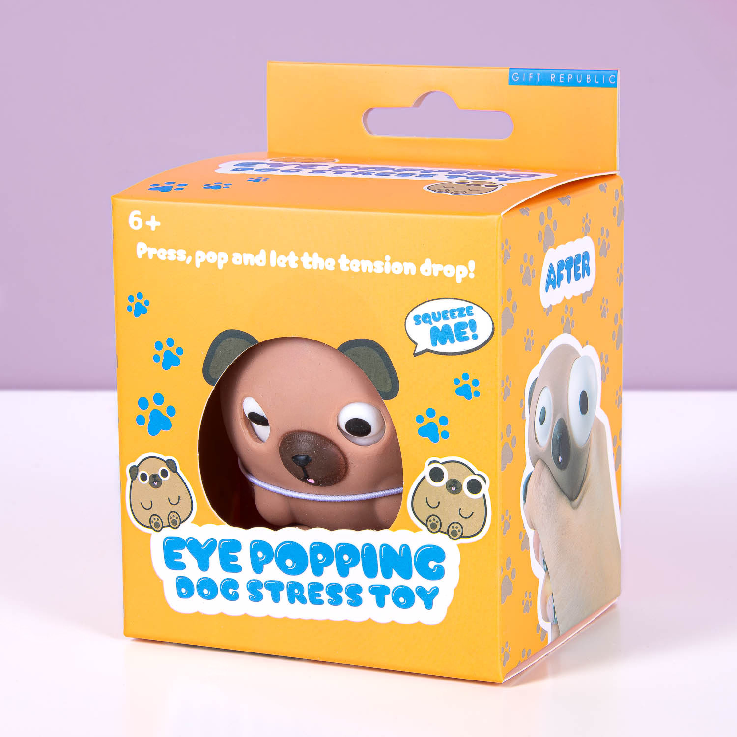 Stress? Knijp gewoon in je hond. Niet in je huisdier natuurlijk, maar de Hond stressbal met uitpuilende ogen van Gift Republic! Hij is het perfecte bureauaccessoire als je even stoom moet afblazen. Knijp in de zachte hond en kijk hoe zijn ogen op komische wijze uit zijn kop puilen. Onmogelijk om niet om te lachen, en daarna voel je je meteen een stuk beter.