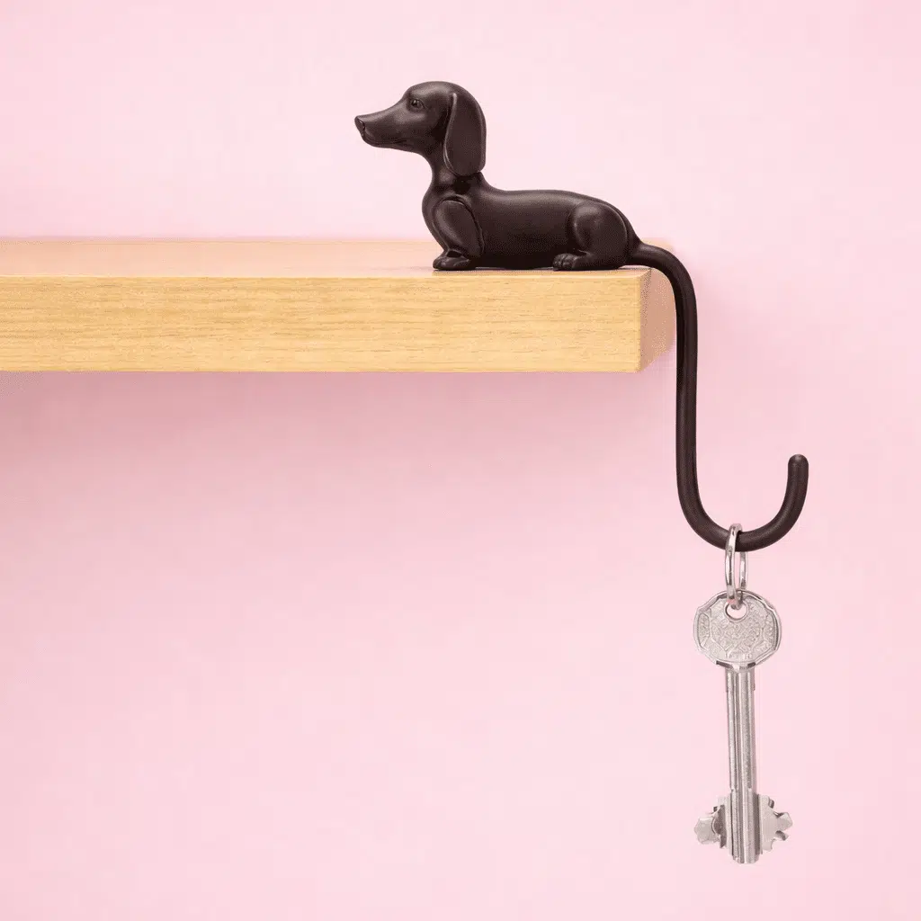 Is je bureau een chaos van kabels en accessoires? Rusty helpt je! Bevestig deze schattige hond aan je computerscherm en gebruik zijn staart als haakje voor je koptelefoon of opladers: alles wat je binnen handbereik wilt hebben. Of hang hem in de hal op een plankje, zodat je nooit meer je sleutels kwijt bent. Een handig cadeau voor iedereen met een rommelig bureau!