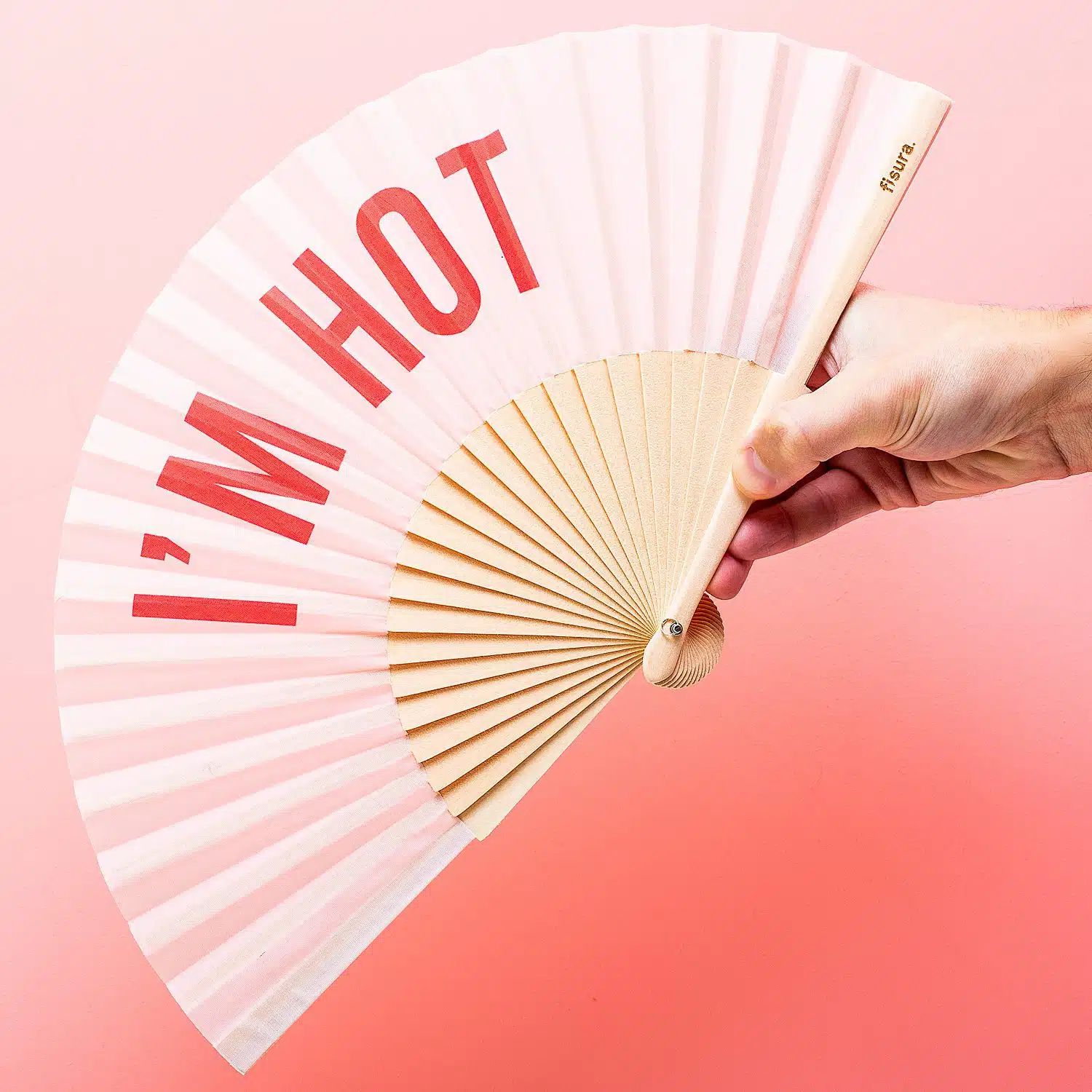 Is de zomer jouw favoriete seizoen en kan je niet wachten tot je met je vriendinnen alle festivals onveilig kunt maken? Met de Houten waaier I’m Hot van Fisura doe je dat in stijl. Deze vrolijke waaier is voorzien van de tekst: I’m Hot, wat natuurlijk op twee manieren valt te interpreteren. Heb je het heet van het dansen, wuif jezelf dan koelte toe met deze handige waaier.