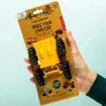Een auto maken die zelf kan rijden: dat is toch leuk? Je doet het met de Huckleberry DIY auto van Kikkerland. Met deze set kunnen kinderen hun eigen auto maken. Je krijgt twee basisonderdelen met wielen, touw en de benodigde batterijen om de auto te laten rijden. Het enige wat je verder nodig hebt is een plastic fles. Maar je kunt natuurlijk ook een andere bovenkant knutselen, zoals bijvoorbeeld van karton.