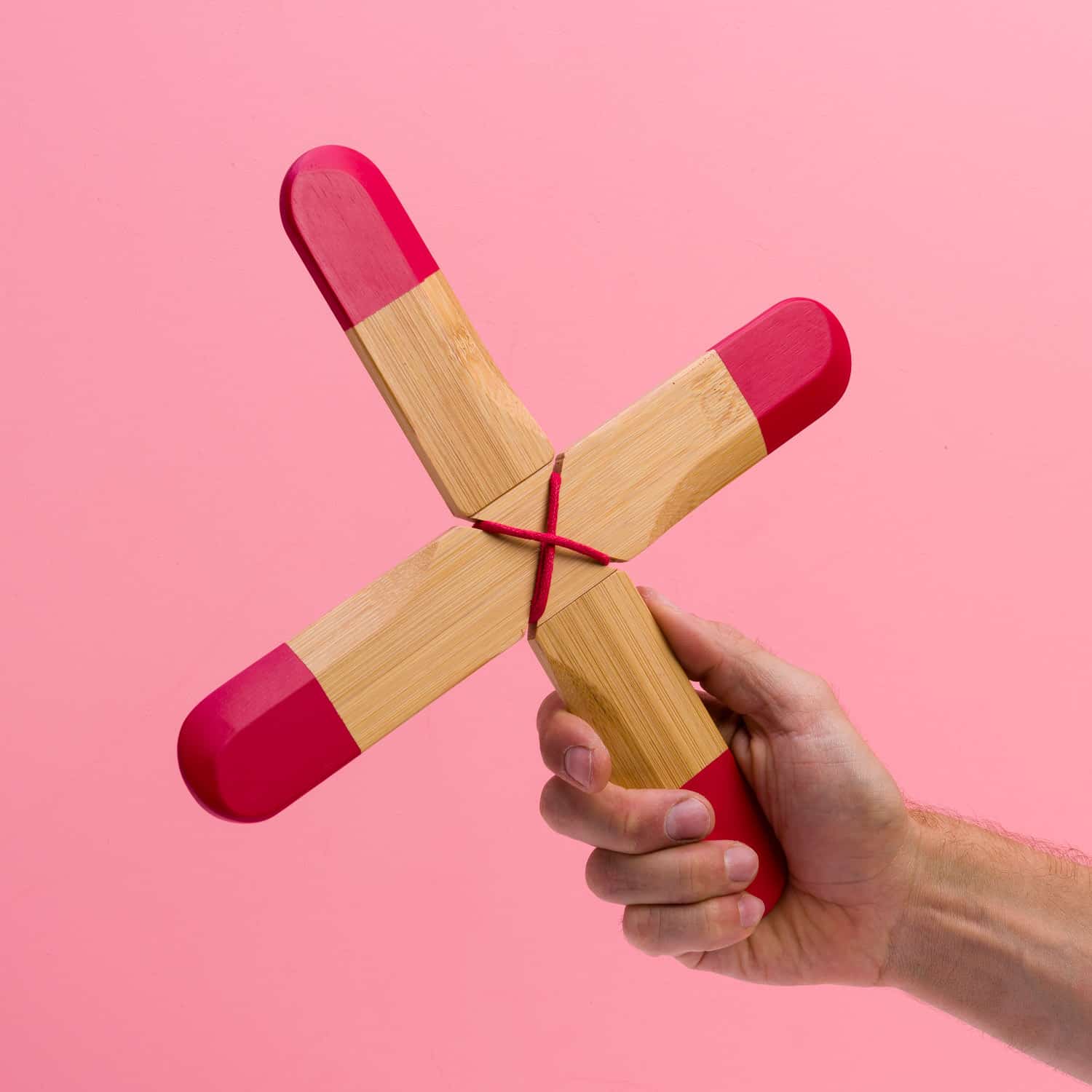 Een compacte boomerang die je eenvoudig in elkaar kunt zetten. Leuk voor op het strand of in een park. Zie hoe de boomerang vanzelf weer bij je terug komt.