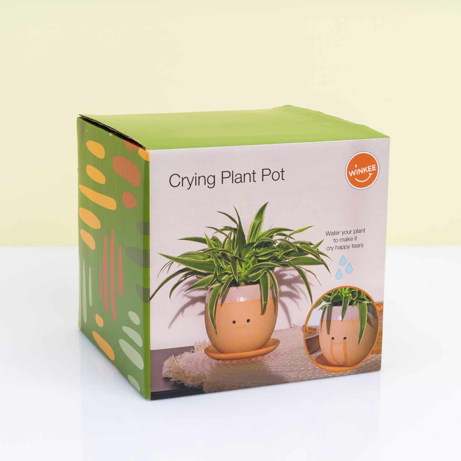 Huil jij wel eens als je heel blij bent? De Huilende bloempot van Winkee ook! Deze originele bloempot huilt happy tears als je hem water geeft. Dat is direct een handige manier voor hem om van het overtollige water af te komen. De bloempot heeft een vrolijk gezichtje en met een mooie plant kun je bovendien zijn kapsel bepalen. Kies bijvoorbeeld voor vrolijke groene stekels met een Aglaonema of Vrouwentong.