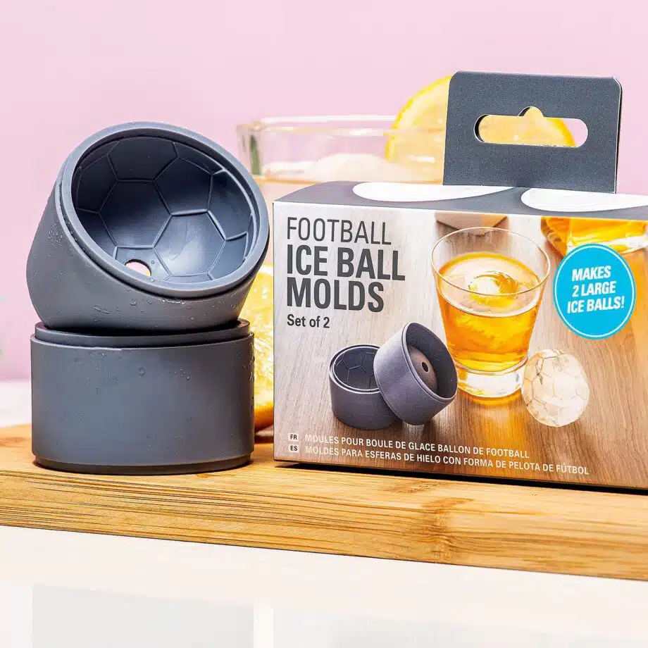 Of je nu zelf dagelijks op het sportveld staat of liever sportief met een drankje op de bank hangt: de IJsbal vorm (set van 2) van Kikkerland geeft je in elk geval het gevoel dat je sportief bezig bent. Met deze mallen maak je ijsballen die eruit zien als een golfbal of voetbal. De mal heeft twee delen: je vult hem aan de bovenkant en plaatst hem in de diepvries. Na een paar uur heb je een bevroren voetbal of golfbal die je drankje een sportieve touch geeft.