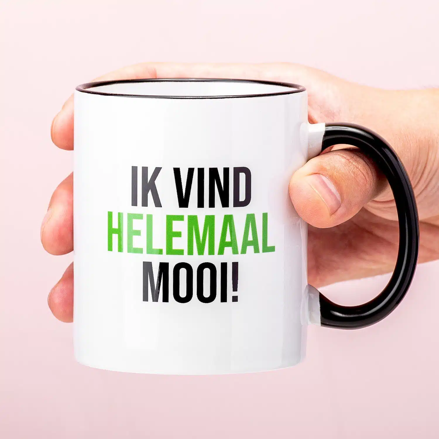 Een blikje in het water gooien en dan een boete krijgen van 100 euro? Beetje zonde van het geld. Maar ook leerzaam, want je zult het nooit weer doen. Dat zegt tenminste de meneer van de ‘Ik vind helemaal mooi’ meme, op wie deze Ik vind helemaal mooi mok is geïnspireerd. Grappige mok voor mensen die het niet zo nauw nemen met het milieu: misschien leren ze er iets van.