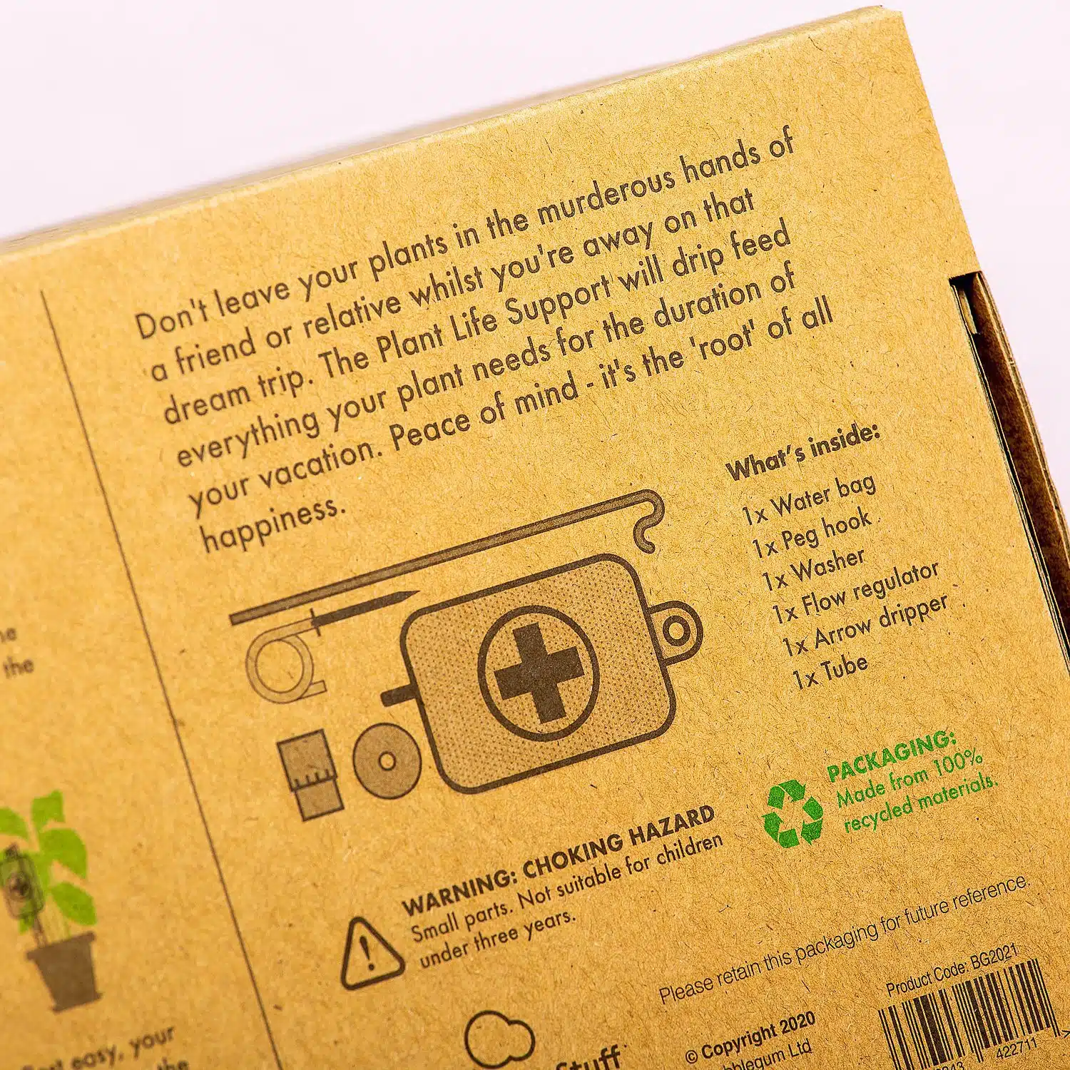 Laat je mooie plant niet in de handen van moordzuchtige buren of vrienden vallen: het Infuuszak bewateringssysteem van Bubblegum Stuff zorgt ervoor dat je plant voldoende water krijgt. Deze infuuszak zet je in de potgrond en vul je met water. De zak met water loopt langzaam leeg, waardoor je plant gedurende zeven dagen bewaterd wordt. Een grappige oplossing om zeker te weten dat je planten ook na je vakantie nog leven.