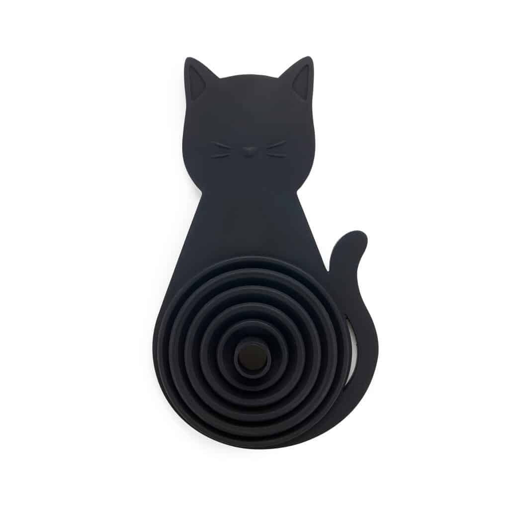 Meow! De Inklapbare kat trechter van Balvi is een inklapbare trechter in de vorm van een kattensilhouet met opgeheven details op de neus en snorharen. Hij is inklapbaar en compact, dus ideaal voor het morsloos overschenken van vloeistoffen zonder dat hij veel ruimte inneemt. Met magneet aan de achterkant kun je hem op de koelkast of elk metalen oppervlak hangen. Een handig cadeau voor kattenliefhebbers!