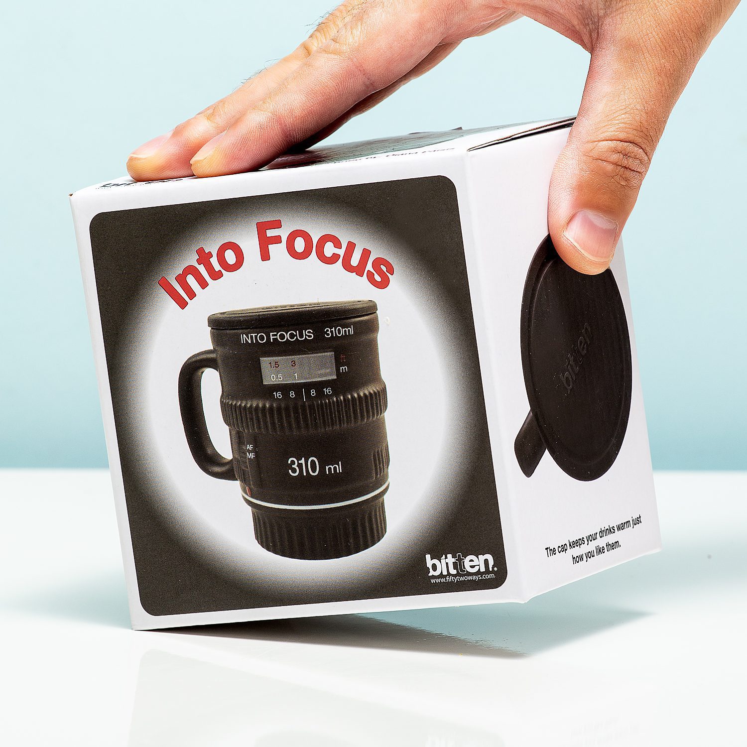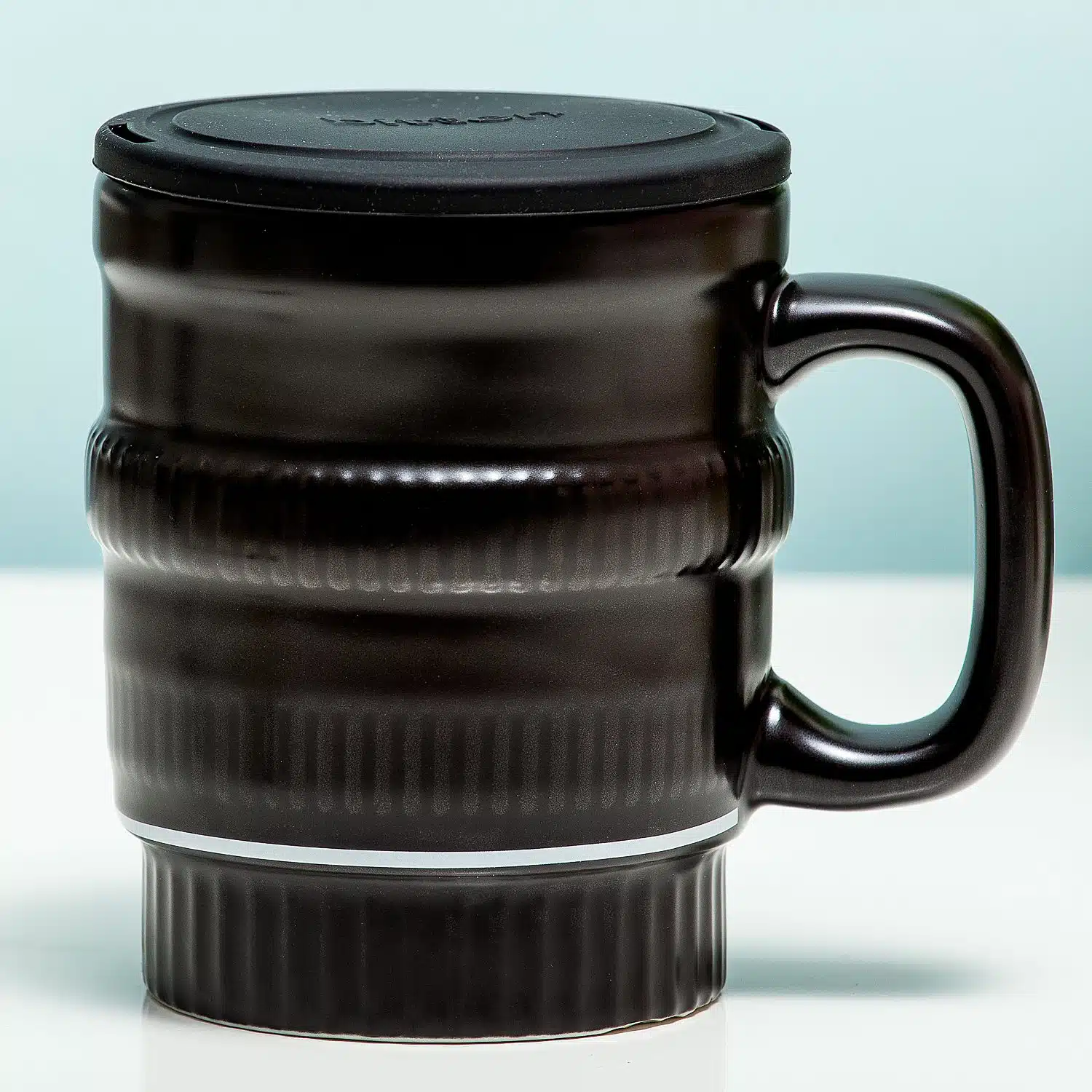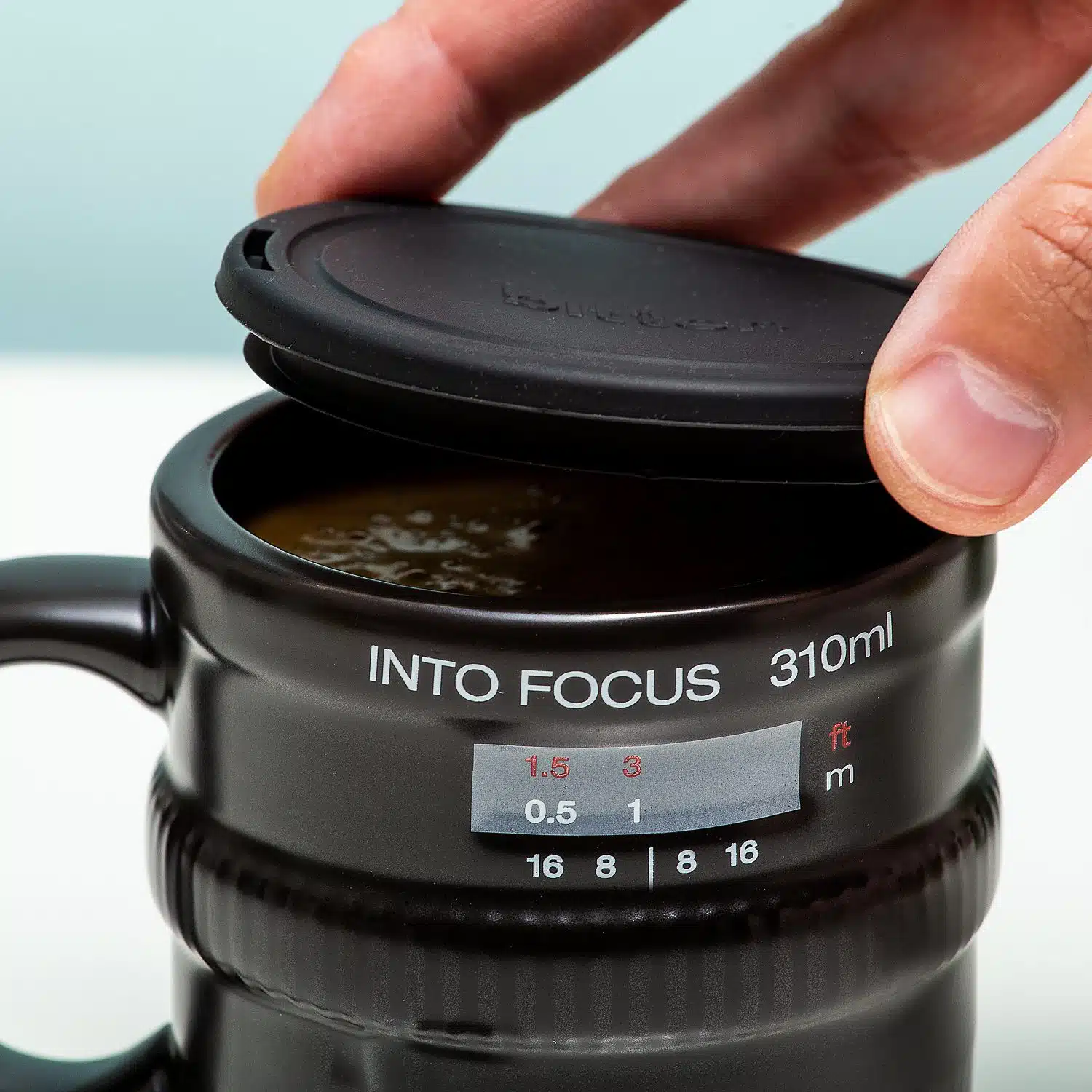 Droom je van een toekomst als fotograaf? Met de Into Focus cameralens beker van Bitten zet je alvast een stapje in de goede richting. Deze mok – in de vorm van een cameralens – voorziet je van lekker warme koffie of thee terwijl jij leert om foto’s te bewerken of hoe de instellingen van je camera werken. De lensdop is in werkelijkheid een deksel om je drankje warm te houden.