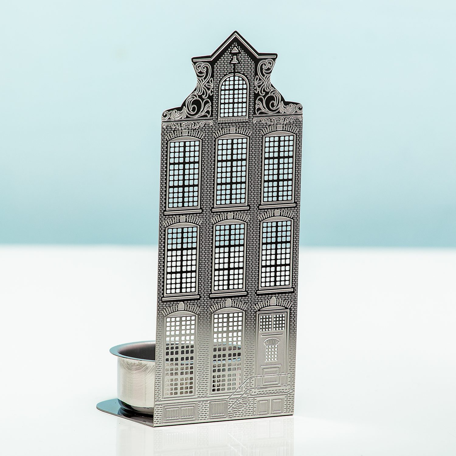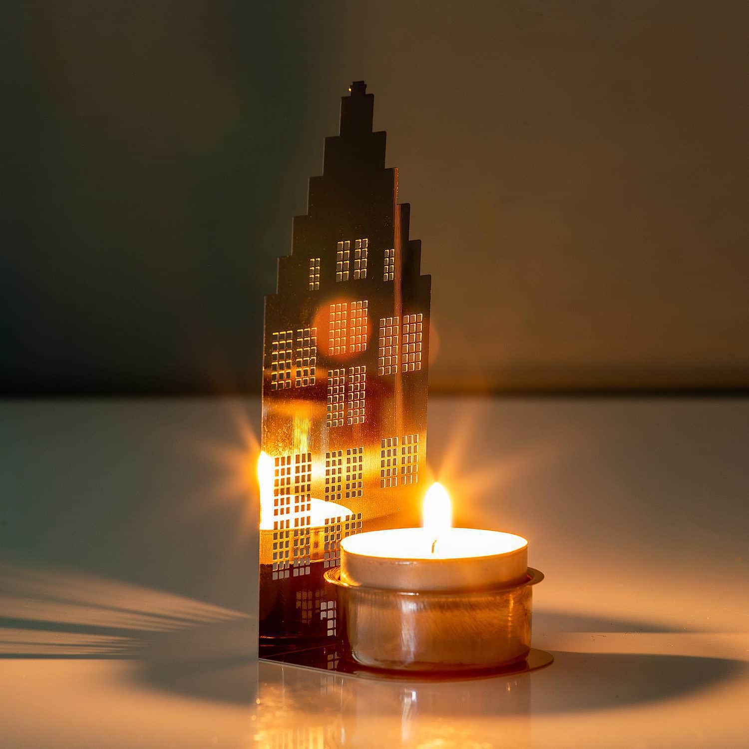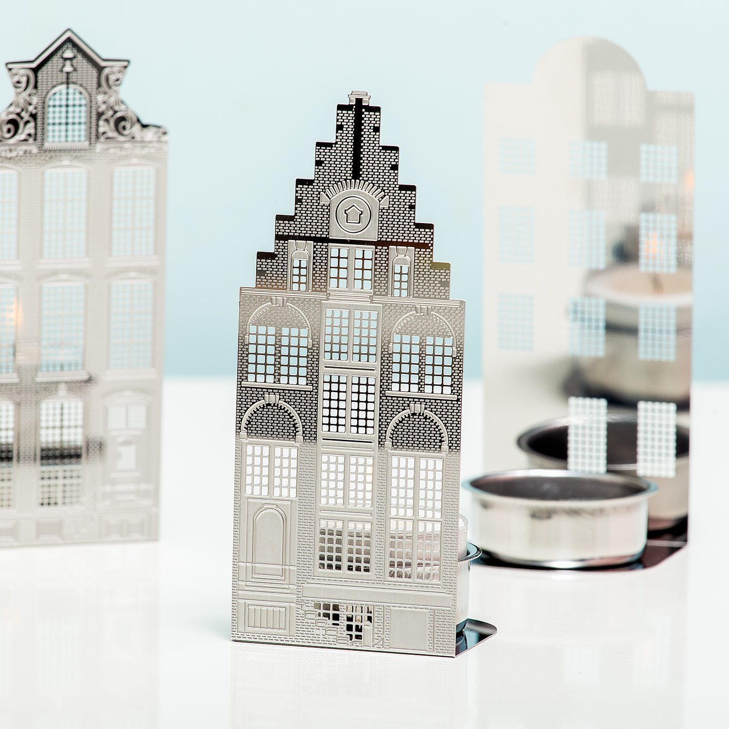 Ben je op zoek naar mooie woonaccessoires voor bijvoorbeeld in de vensterbank of op een plankje? En mag dat best een warme sfeer uitstralen? Deze Grachtenpand waxinelichthouder van Invotis is sfeer- en stijlvol. Het is een waxinelichthouder in de vorm van een Amsterdams grachtenpand met een echte ouderwetse gevel en andere versieringen. Bij deze huisjes moet je gelijk denken aan de mooie en bijzondere grachtenpanden in Amsterdam. De Grachtenpand waxinelichthouder is er in verschillende uitvoeringen: je kunt kiezen uit een grachtenpand met een trapgevel, een halsgevel of een halve cirkel gevel.