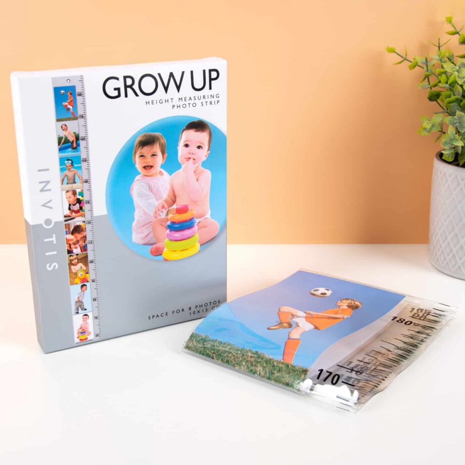 Ben je op zoek naar het ideale kraamcadeau? Stop maar met zoeken, wij hebben het. De Grow Up fotolijst voor kinderen van Invotis is het perfecte cadeautje voor nieuwe ouders. De fotolijst combineert foto’s samen met een meetlint. Zo kunnen jullie altijd precies zien of de kleine spruit is gegroeid en er een foto van die tijd naast hangen. De Grow Up fotolijst heeft in totaal acht vakjes voor foto’s van 10 x 15 cm. Nieuwe ouders zullen lang plezier hebben van deze fotolijst, want voordat hun kleine in het laatste vak is aanbeland, is ‘ie tussen de 1.70 en 1.80 meter.