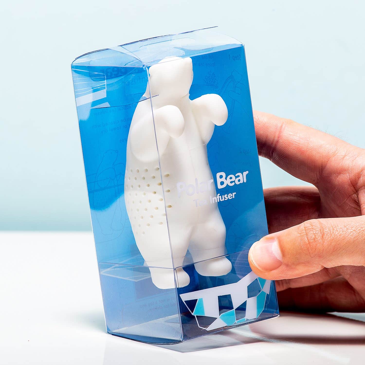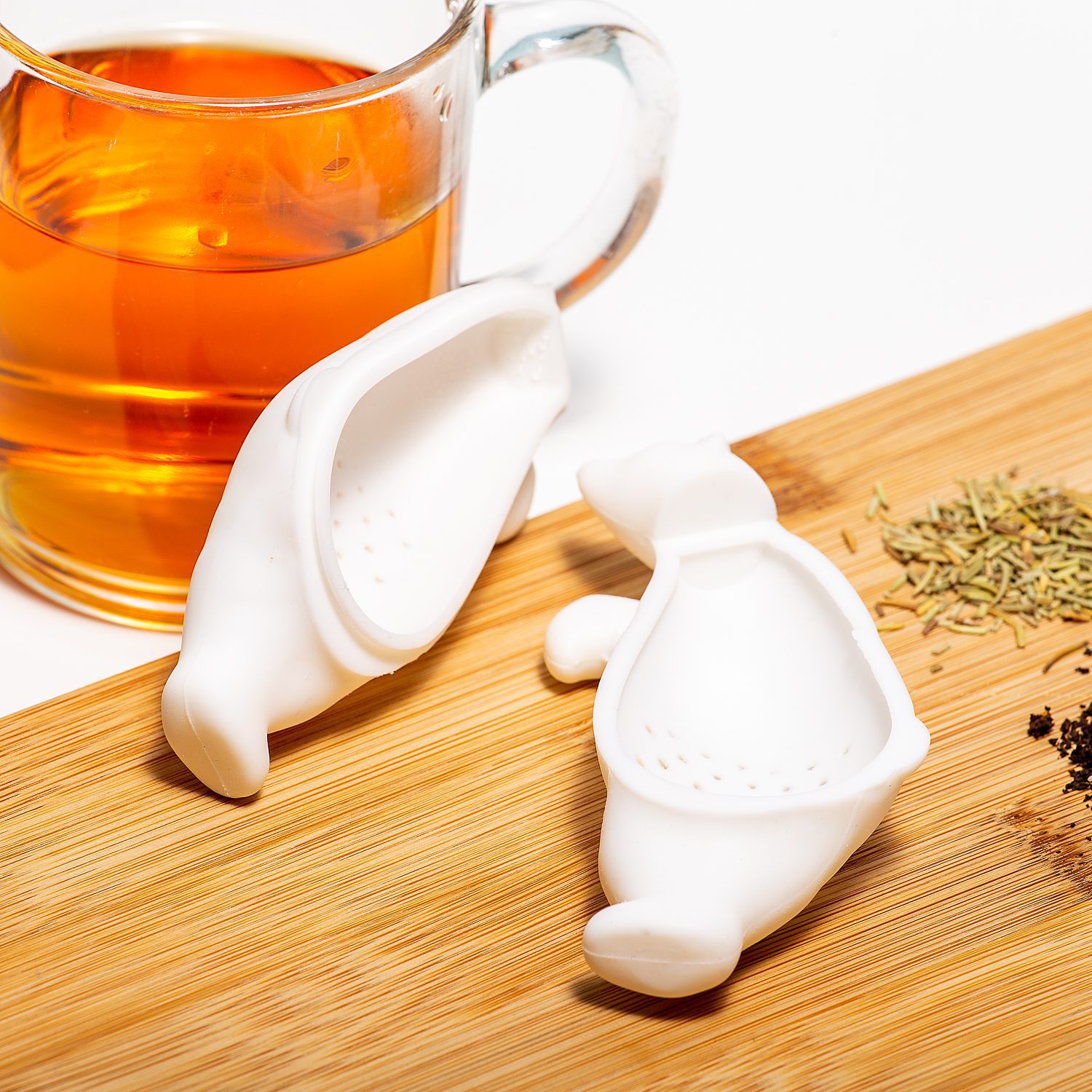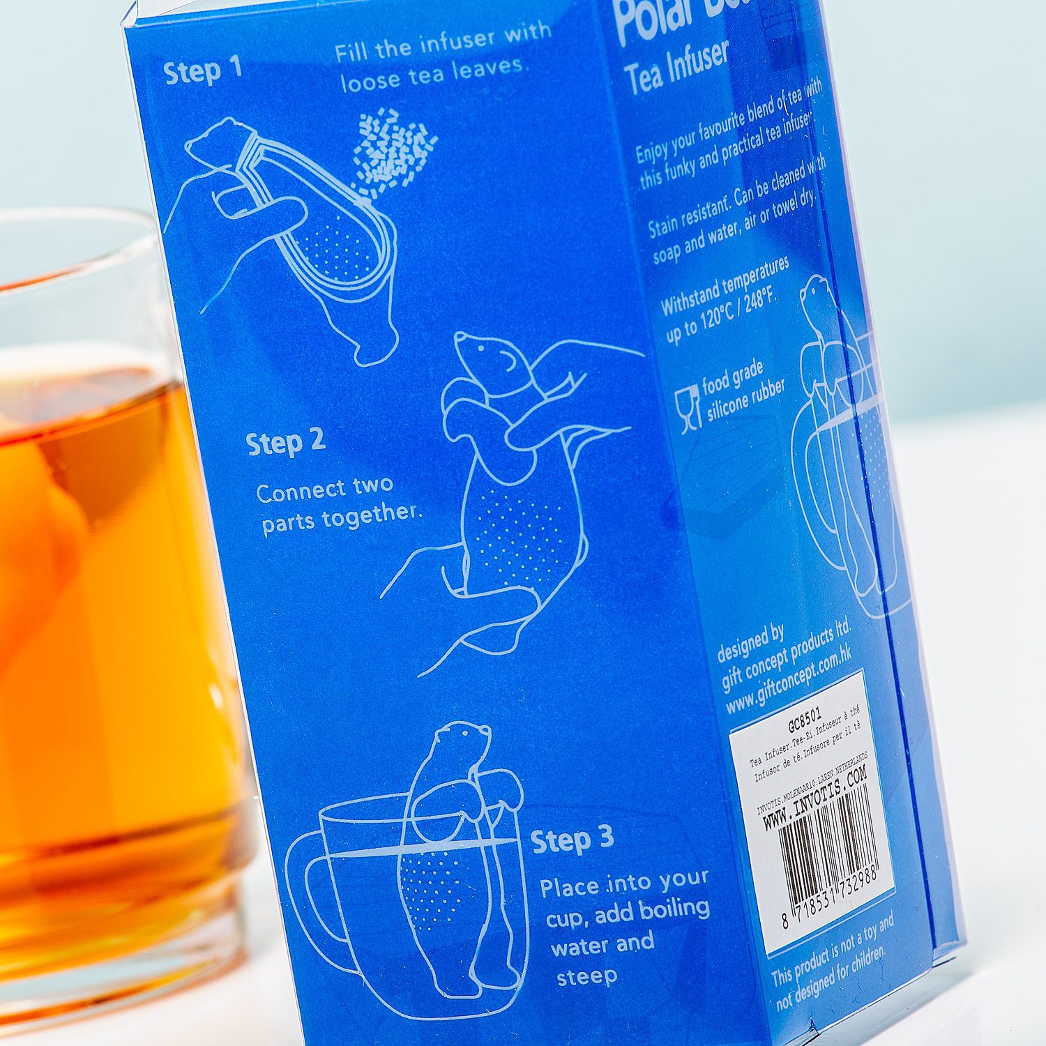 Scharrel jij in de winter ook rond in huis als een ijsbeer op zoek naar lekker eten? Of misschien naar een warm plekje? Creëer je eigen knusse plek met de IJsbeer tea infuser van Invotis. Deze siliconen thee infuser vul je met losse thee. Vervolgens hang je de infuser aan zijn voorpoten in je theeglas met heet water. Binnen een paar minuten heb je heerlijke thee en kun jij op de bank kruipen met een goed boek of een film.