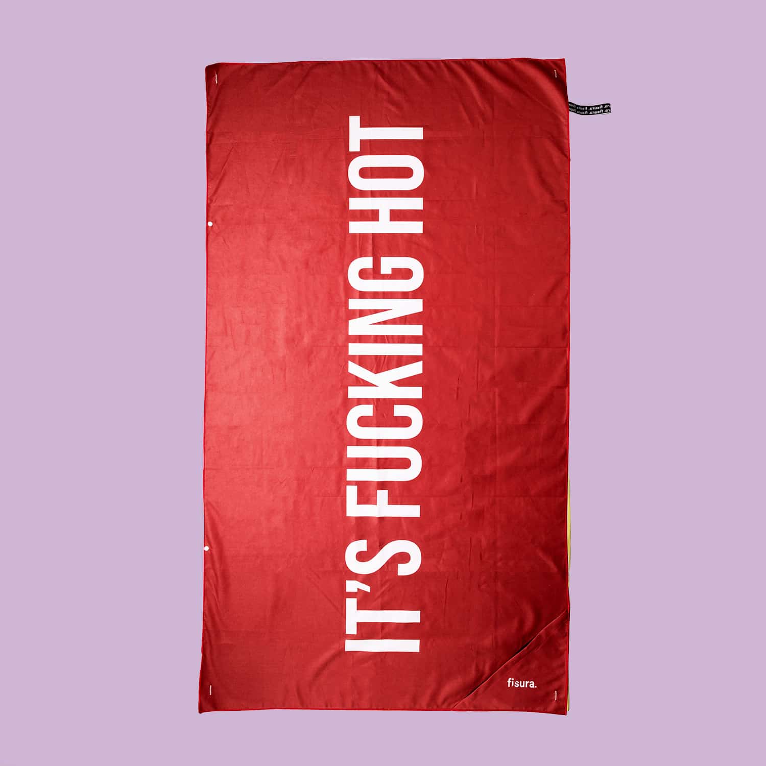 Strandlaken met tekst: It’s Fucking Hot van Fisura