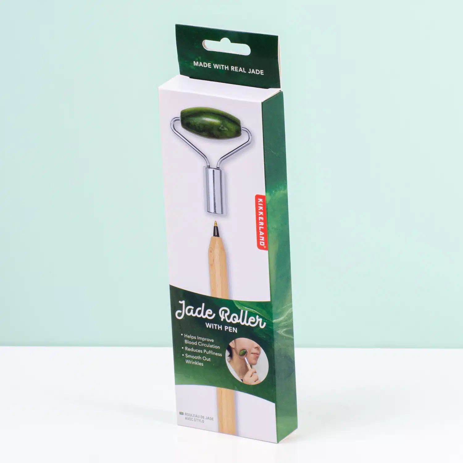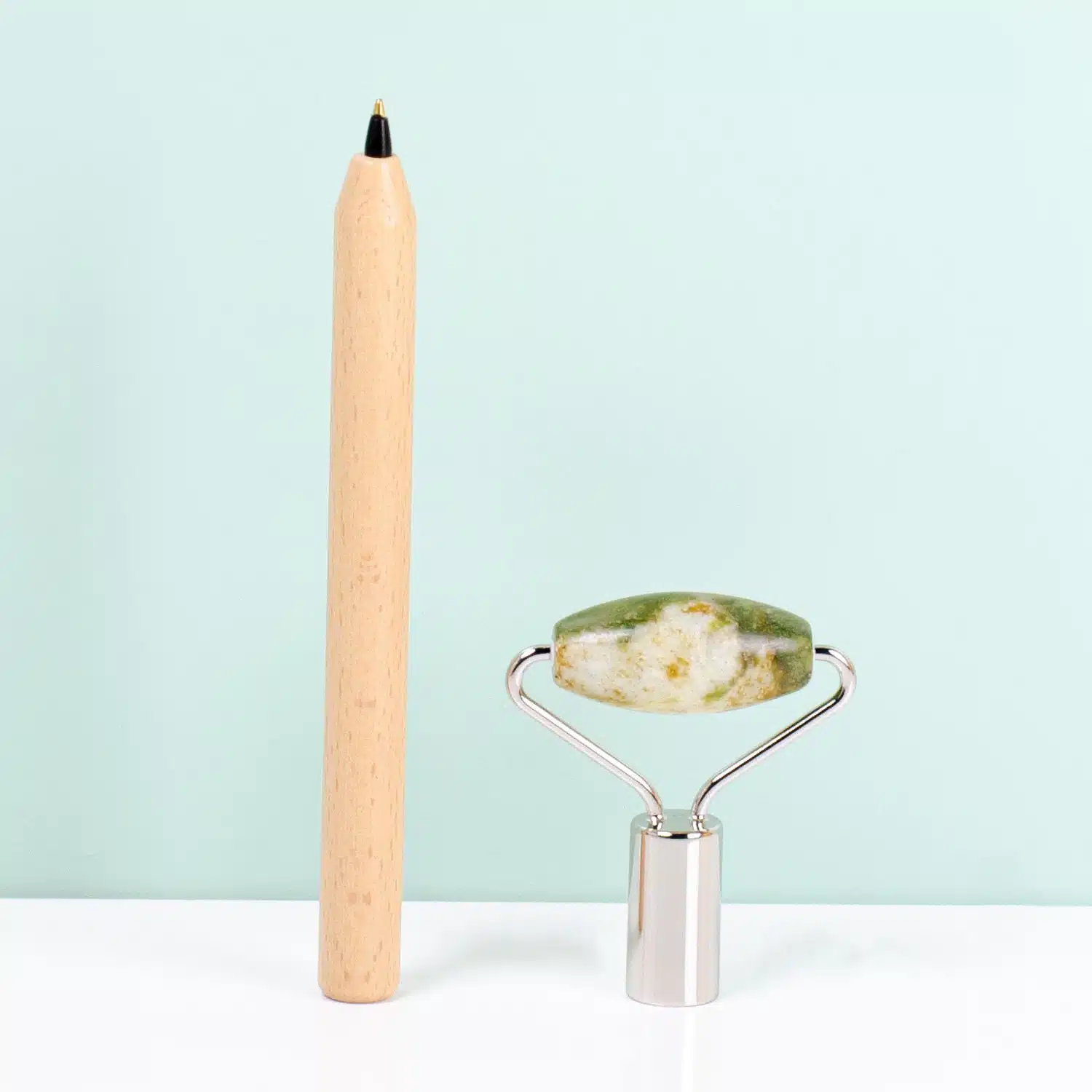 Als je weinig tijd hebt in de ochtend, dan kun je altijd je gezichtsroutine aan je bureau doen als je op het werk bent aangekomen. Even wat crème smeren moet kunnen toch? En gelukkig heb je je Jade roller met pen van Kikkerland toch bij je. Deze grappige twee-in-één tool bevat dus zowel een jade roller als een pen. Zo kun je tijdens je gezichtsverzorging direct opschrijven wat je allemaal nog moet doen die dag. De jade roller kan een puffy gezichtshuid verminderen.