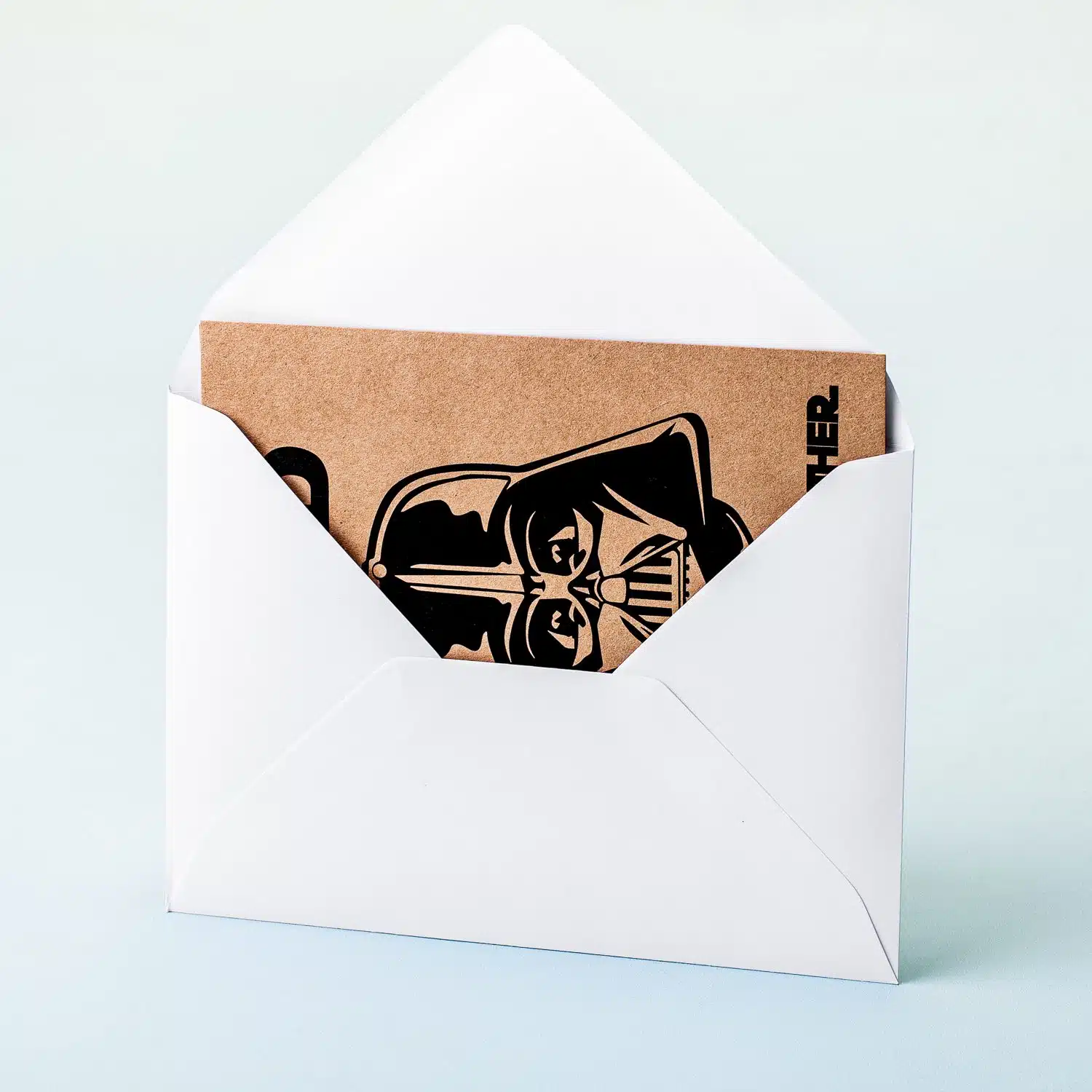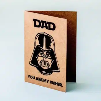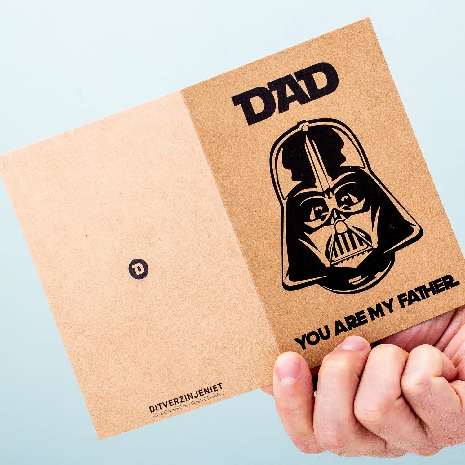 Natuurlijk geef je je pa een leuk kado met Vaderdag. Maar ook een kaart met wat lieve woorden hoort erbij! De Kaart Dad You Are My Father is perfect voor Vaderdag! Hij bevat een afbeelding die geïnspireerd is op Darth Vader en de tekst Dad You Are My Father. De kaart is gedrukt op craftpapier op A6 formaat. De binnenkant is leeg, dus je hebt voldoende ruimte om wat liefs te schrijven.
