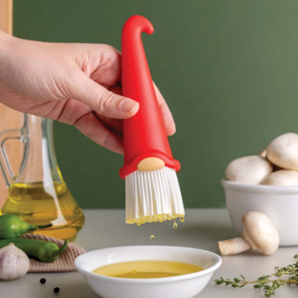 Maak kennis met de Kabouter bakkwast van Ototo: niemand smeert zoals deze kabouter! Deze bakkwast heeft zachte haartjes die de baard van de kabouter vormen. Perfect voor het glazuren van gebak, BBQ-sauzen of marinades: de zachte haren krassen niet, laten geen haren achter en houden elke druppel vast. Van oliën tot sauzen, deze kabouter spreidt alles perfect. Een leuk cadeau voor kookliefhebbers!