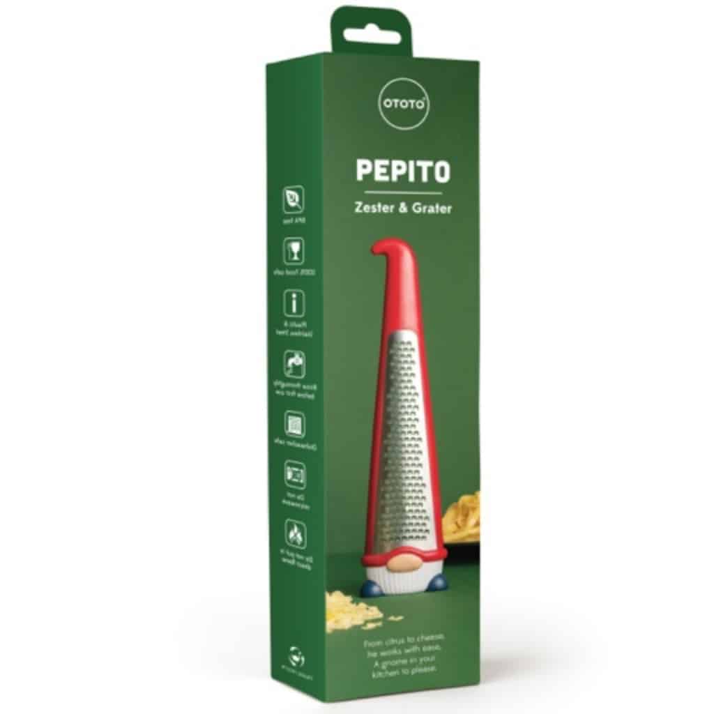 Maak kennis met Pepito! Deze kabouter rasp van Ototo verandert harde ingrediĆ«nten in smaakstof met zijn magische tanden. Pepito’s scherpe tanden maken snel werk van kaas, chocolade, citroenschil, knoflook en gember. Houd zijn puntmuts vast voor comfortabel raspen en gebruik de beschermkap om je vingers veilig te houden wanneer je hem niet gebruikt – dan kleurt zijn hele muts rood. Een handig cadeau voor keukentovenaren!