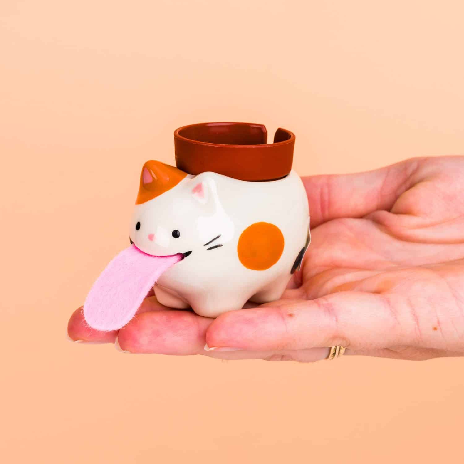 Tuinieren saai? Niet met het Kat bloempotje met aardbeienplantje van Seishin. Een grappig klein bloempotje met het uiterlijk van een kat, met een opvallend grote tong. Met deze stoffen tong zuigt hij water op uit het schoteltje. Het katje komt met aardbeienzaadjes, potgrond en fertilizer. Voor je het weet heb je je eigen aardbeienplantje!