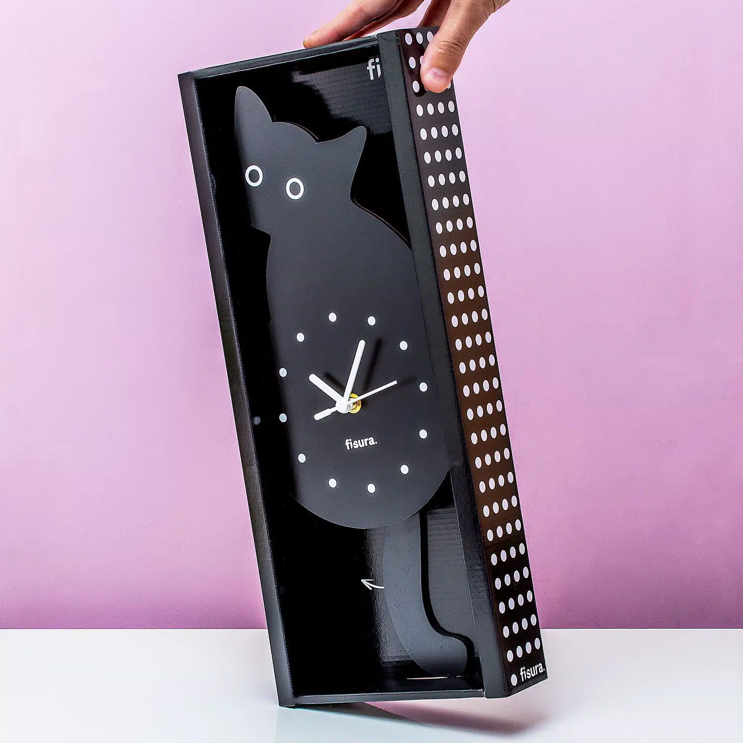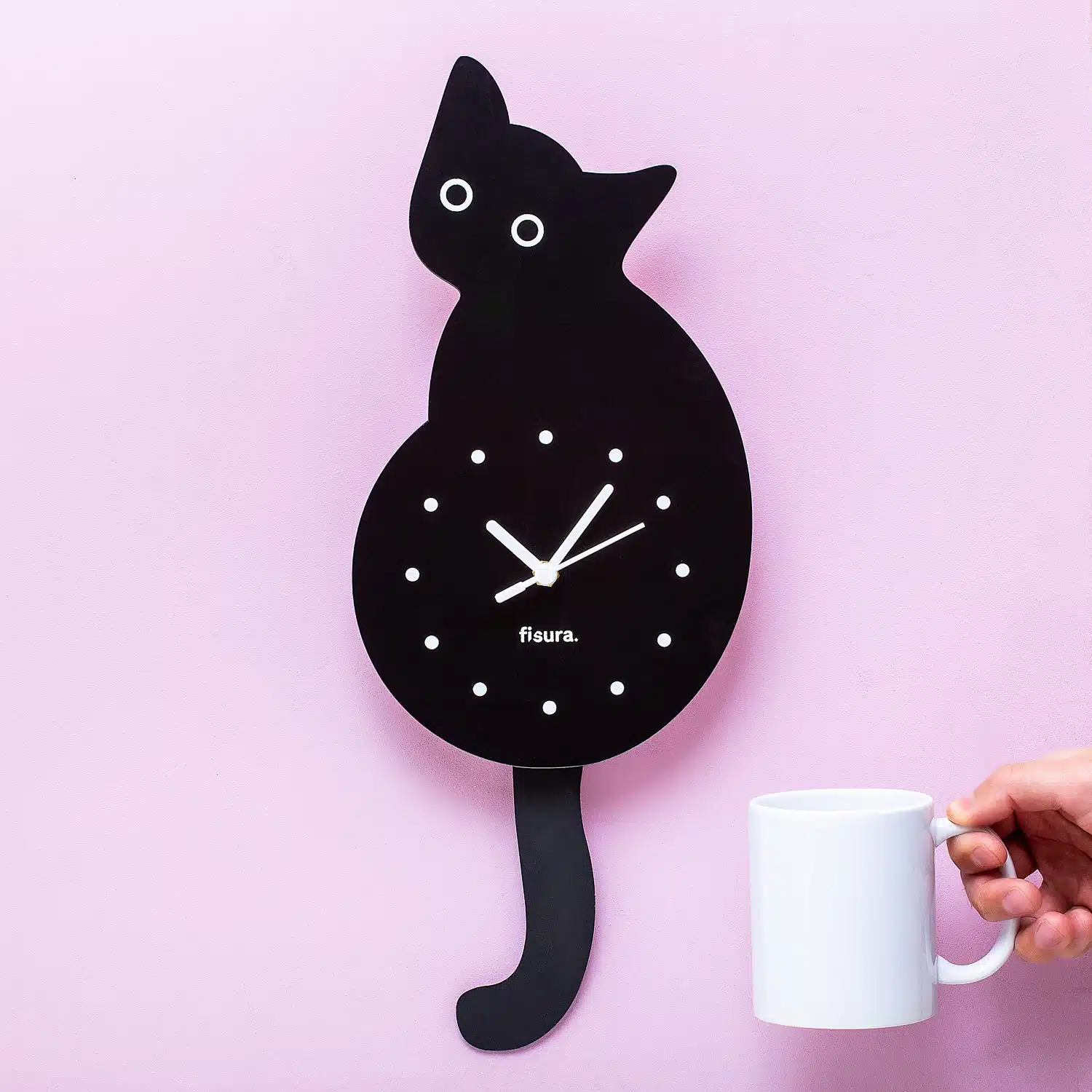 Hey daar, kattenliefhebber. Wij hebben iets moois voor je: de Kat klok van Fisura. Deze originele klok ziet eruit als een kat die achterom kijkt. Hang hem aan de muur, dan zal hij je altijd de tijd vertellen. Super leuk voor de kinderkamer, maar ook voor mensen die niet van standaard woonaccessoires houden.
