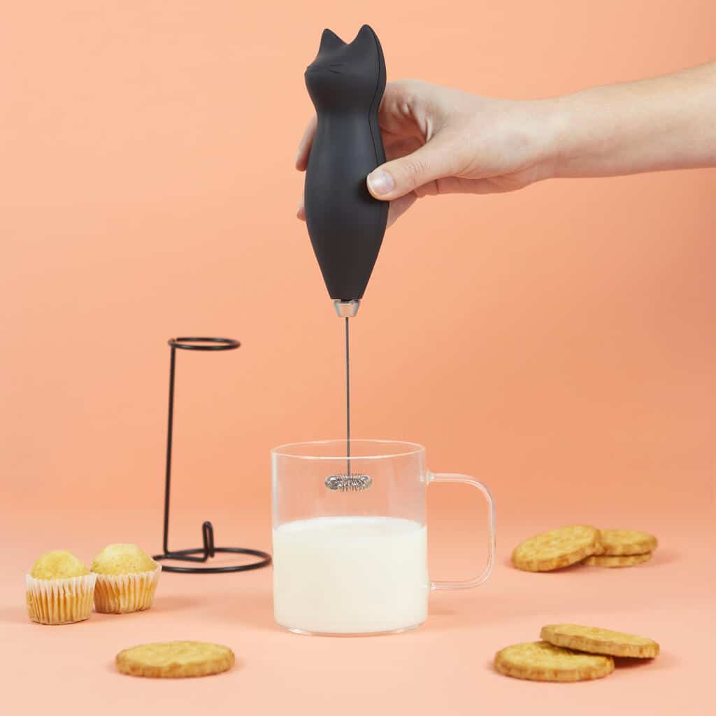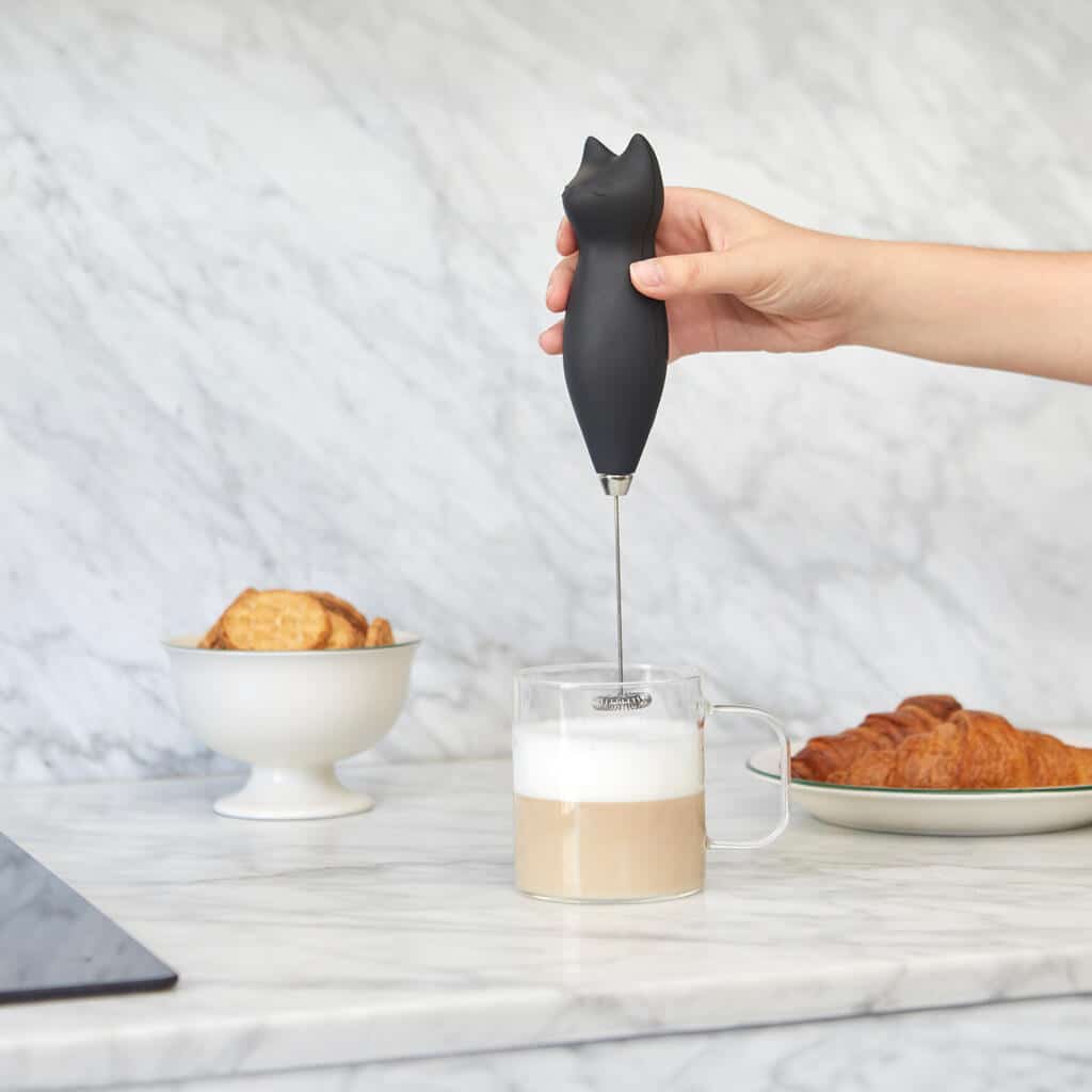 Meow! De Kat melkopschuimer van Balvi is een melkopschuimer in de vorm van een schattig kattenkopje. Deze melkopschuimer werkt niet alleen geweldig, maar is ook onwijs cute! Perfect voor je cappuccino, matcha latte of chai. De gladde afwerking maakt hem extra prettig in gebruik en hij komt met een handige standaard om hem altijd binnen handbereik te houden.