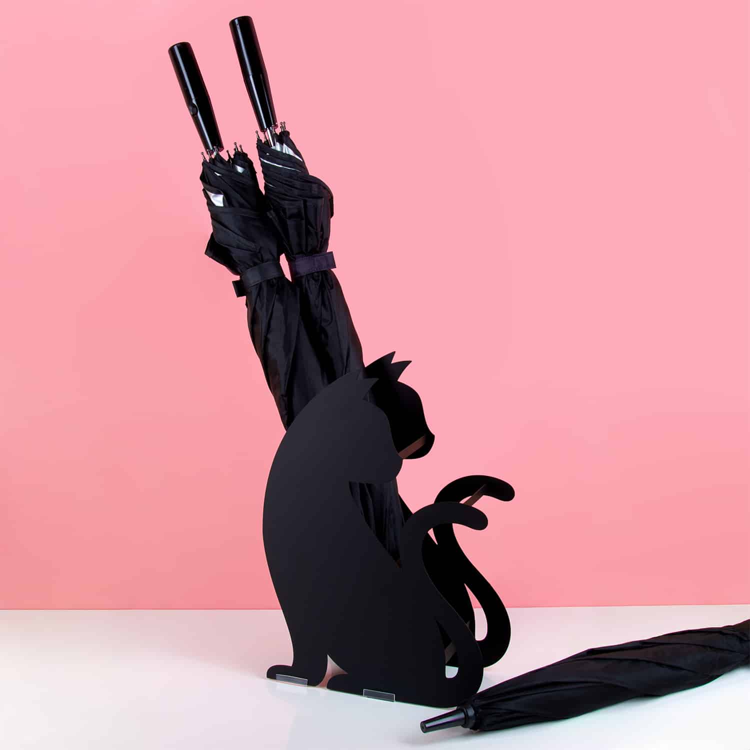 De meeste katten houden niet van water, maar de Kat parapluhouder van Balvi wel. Deze originele parapluhouder lijkt van de zijkant net op een echte kat, die in de gang zit te wachten tot zijn baasje thuiskomt. Maar in werkelijkheid gebruik je hem om natte paraplu’s in te zetten. Hij heeft ruimte voor maar liefst negen paraplu’s. Aan de onderkant zit een opvangbakje voor water, terwijl de voor- en achterkant open is zodat natte paraplu’s makkelijk kunnen drogen.