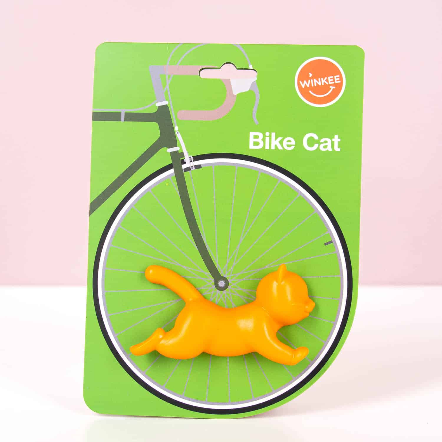 De Kat voor in je fietswiel van Winkee is een grappig oranje katje dat je in je spaken klemt en dat lijkt te rennen als je fietst. Past in elk wiel en zorgt voor instant vrolijkheid tijdens het fietsen. Perfect cadeau voor kattenliefhebbers, fietsers of kinderen. Eindelijk een kat die écht achter je aan komt rennen!