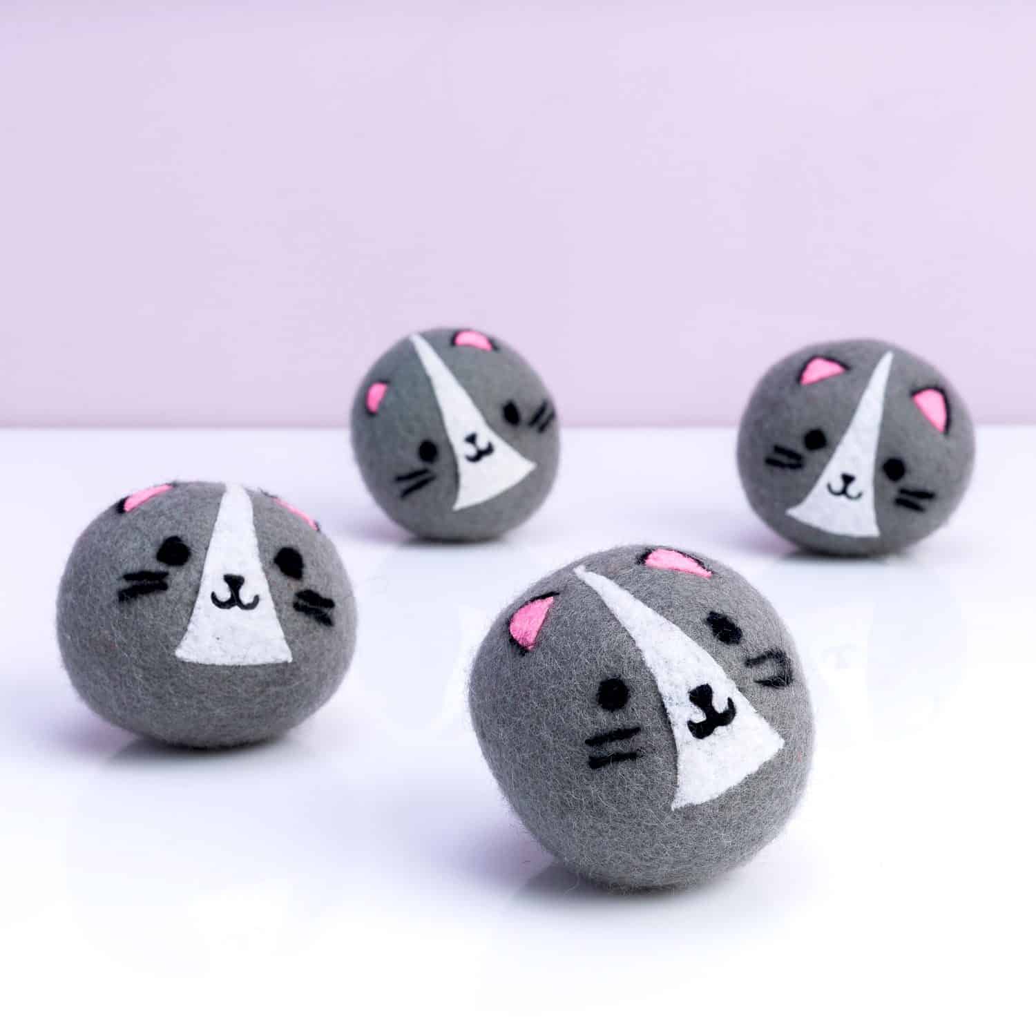 • Set van vier wasdrogerballen in de vorm van een kat