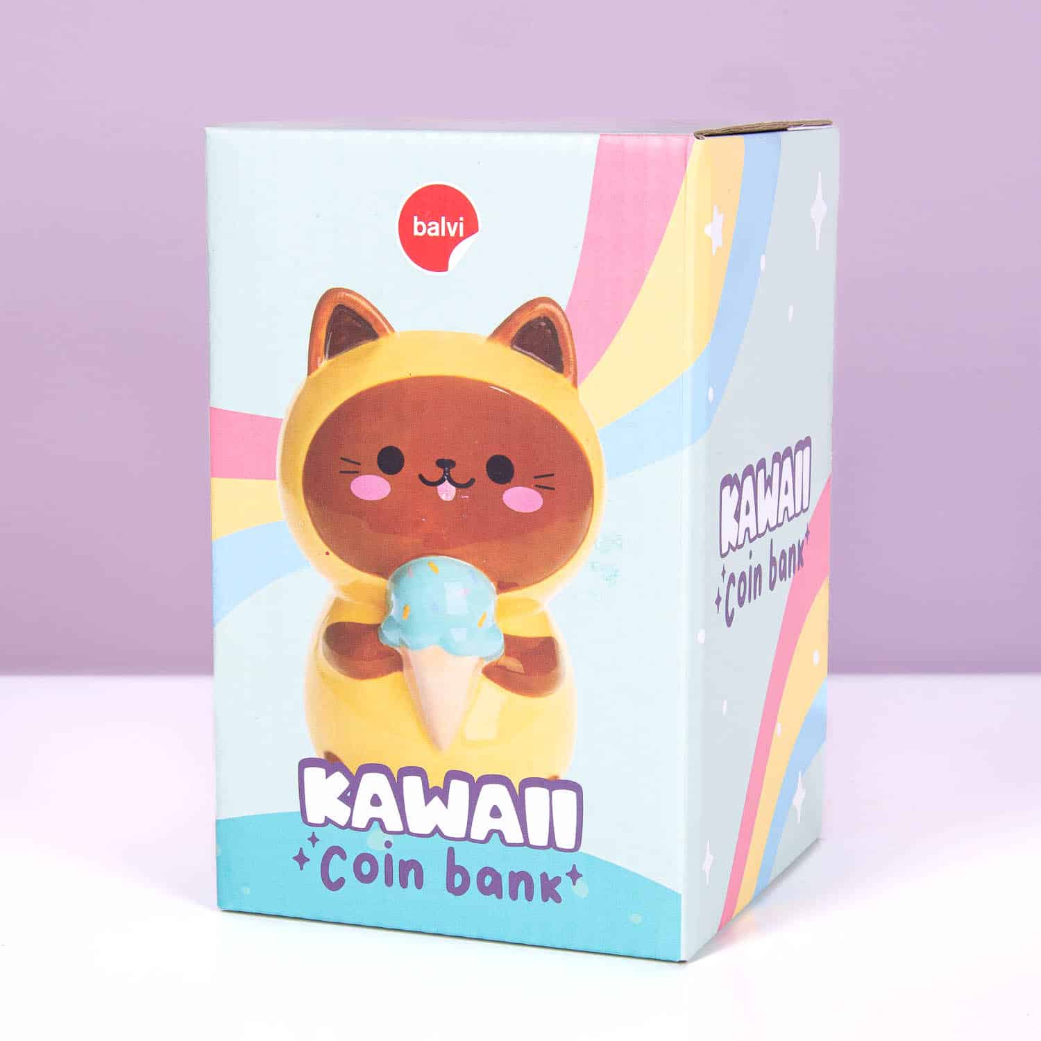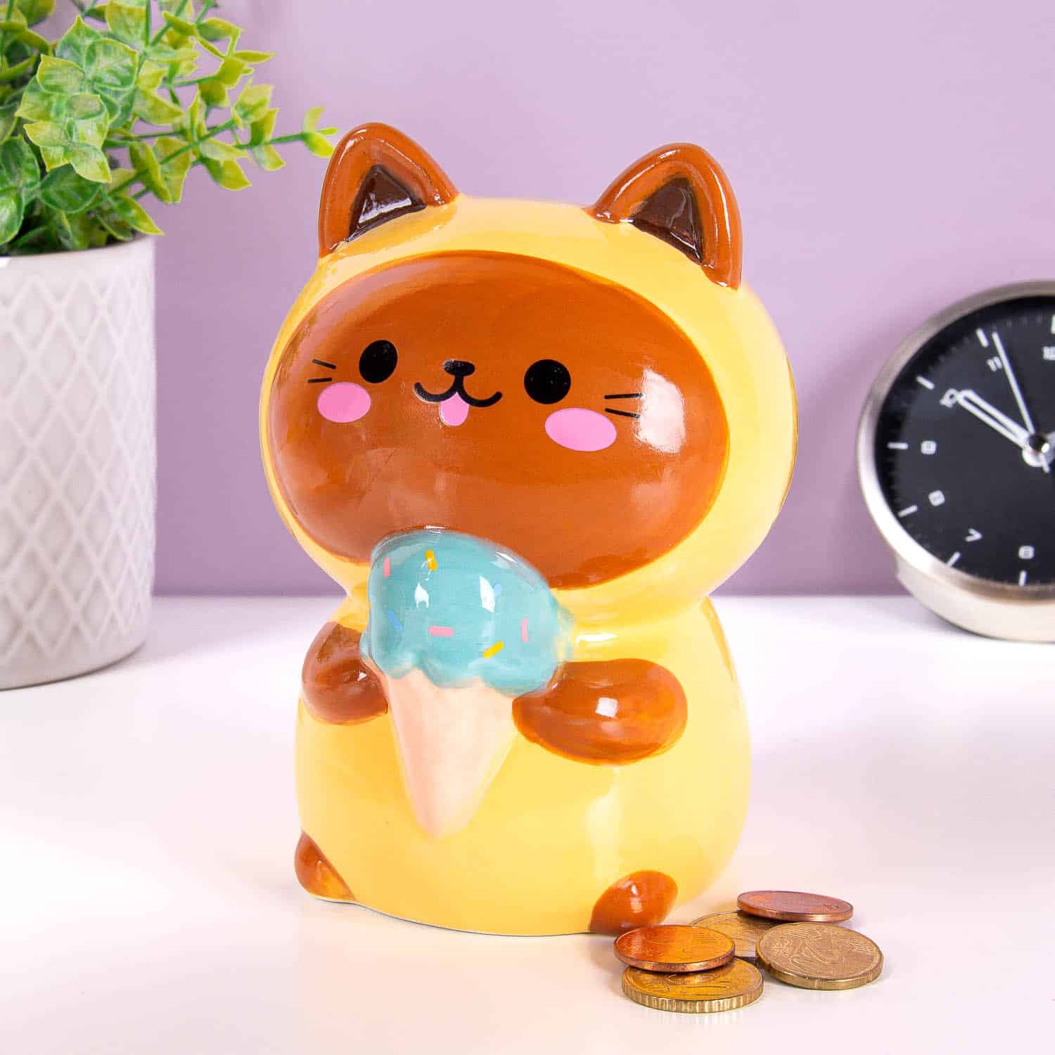 Kawaii kat spaarpot – Geel/ijsje