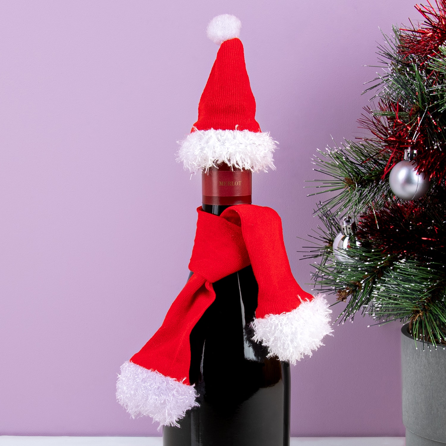 Maak een fles wijn nog feestelijker, met deze Kerstmuts en sjaal voor wijnflessen. De set bestaat uit een kerstmuts en een kerstsjaal voor op een wijnfles. Neem je een fles wijn naar het kerstdiner bij vrienden? Of zoek je een originele manier om je Secret Santa te verrassen? Een fles wijn aangekleed als kerstman is vast niet wat de ontvanger had verwacht.