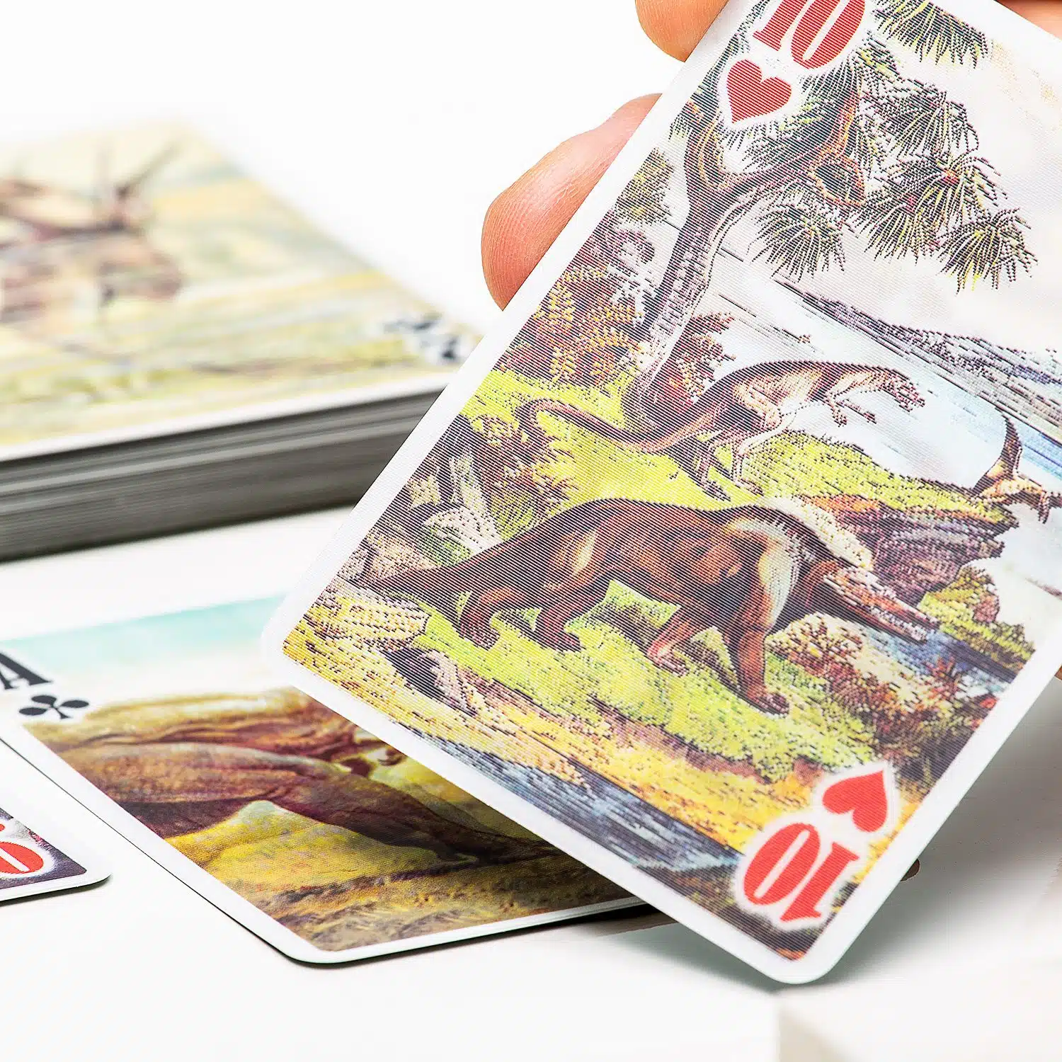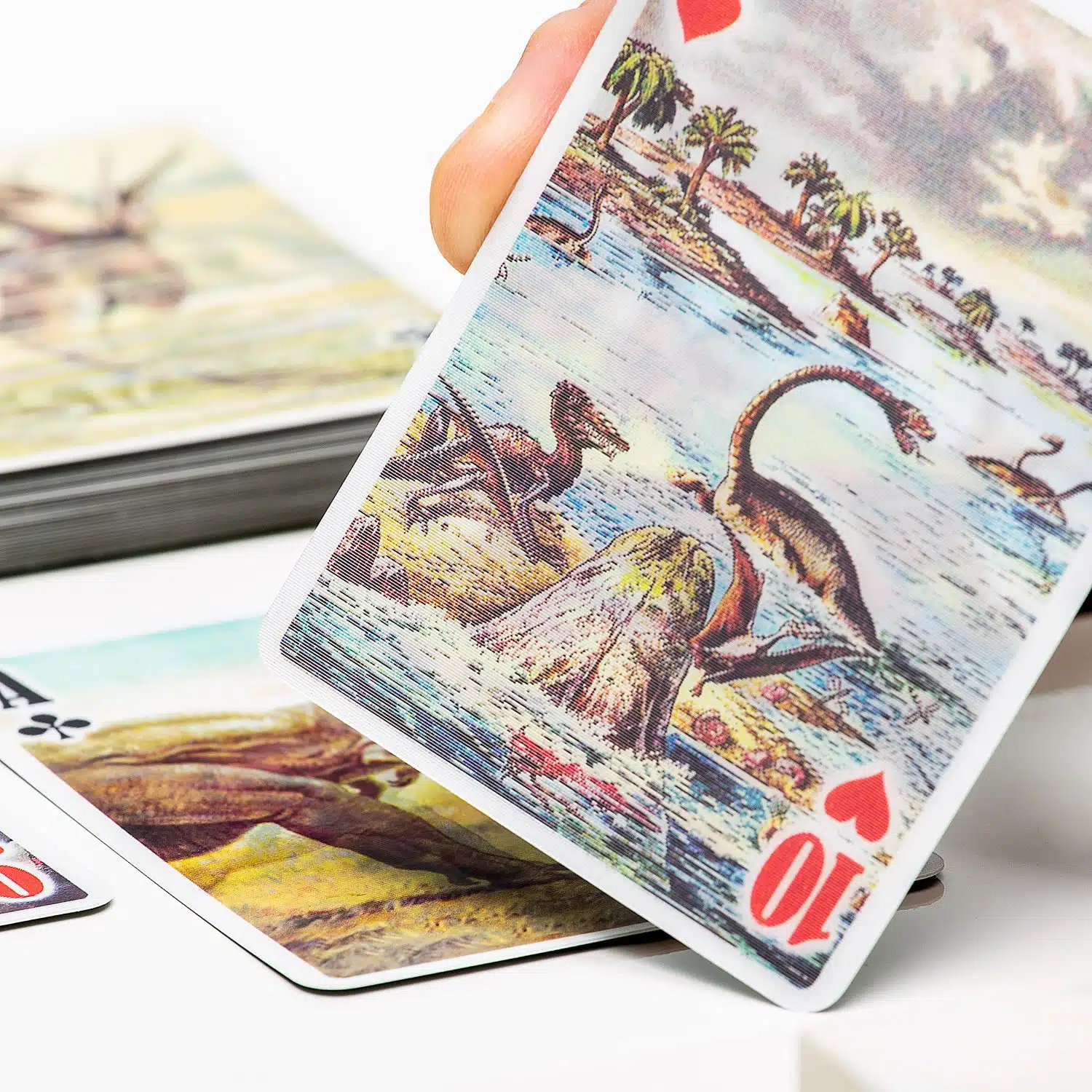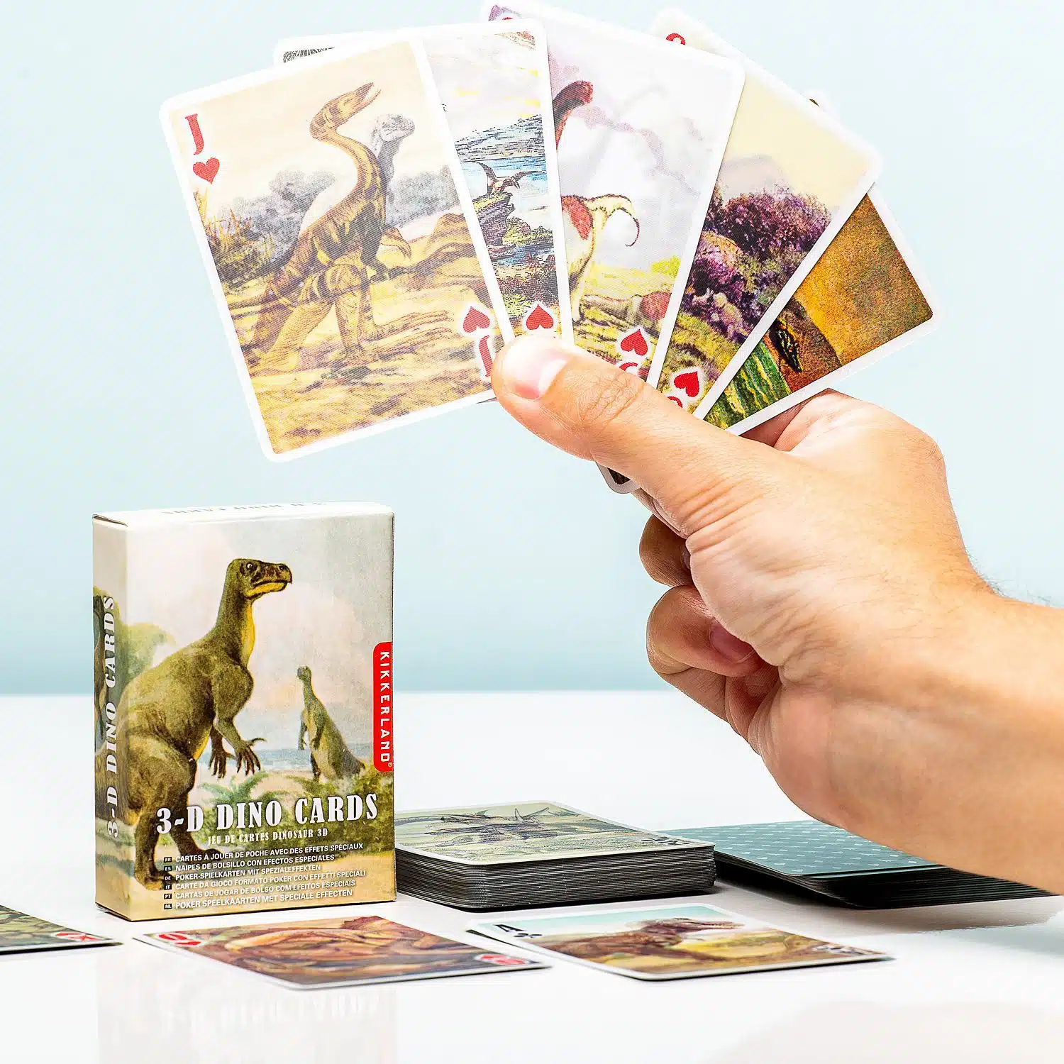 Leg jij in de pauze of in het weekend graag een kaartje met collega’s of vrienden? Met de 3D speelkaarten van Kikkerland wordt dat nog leuker. Deze set kaarten bestaat uit 52 kaarten en twee jokers. De kaarten zijn voorzien van een speciaal laagje, waardoor het lijkt alsof ze bewegen. De set kaarten met katten heeft twee jokers met daarop een hond. De vogelkaarten en dinosaurus kaarten zijn met de hand getekend door John James Audubon. De set 3D speelkaarten is ook super leuk als cadeau voor iemand die dol is op kaarten.