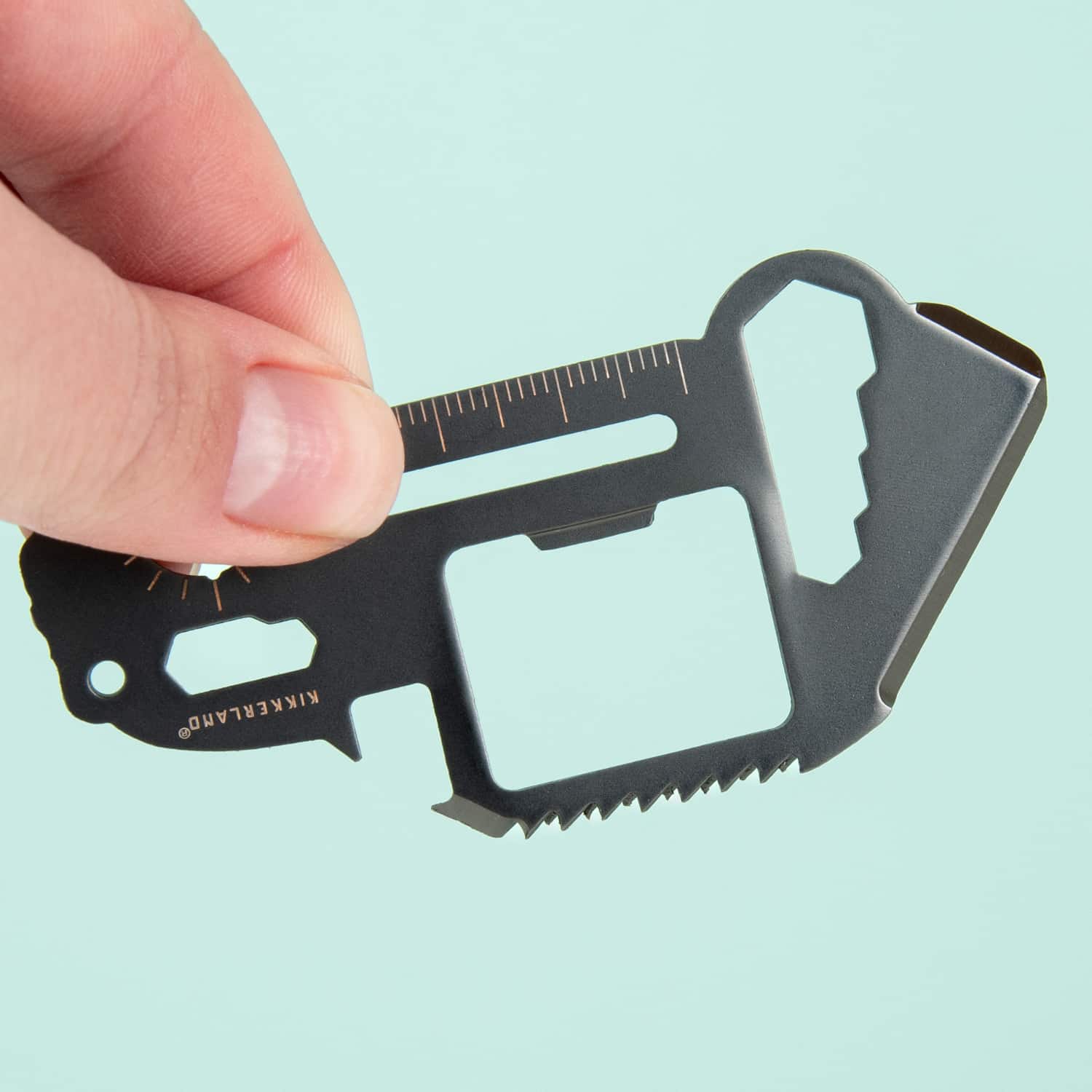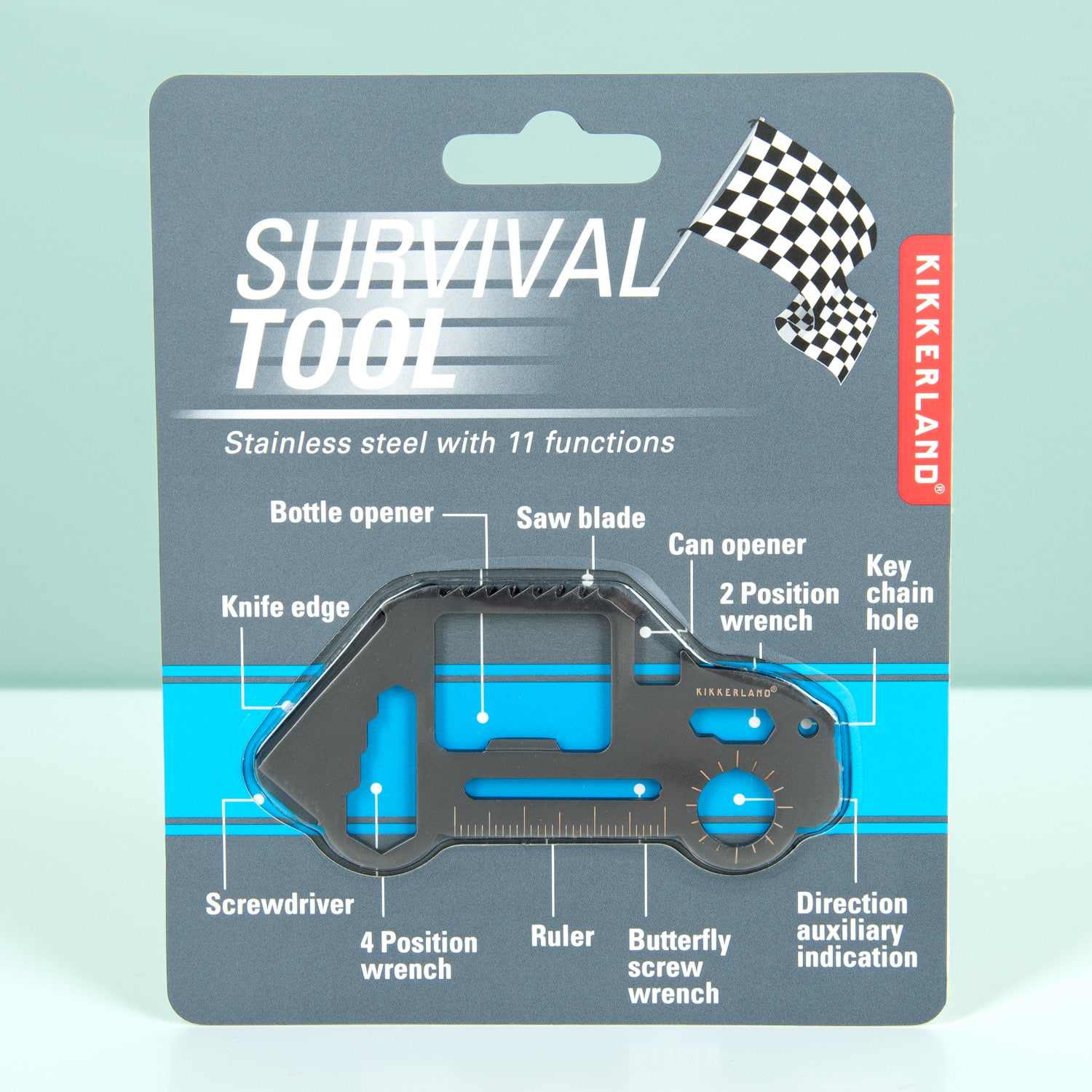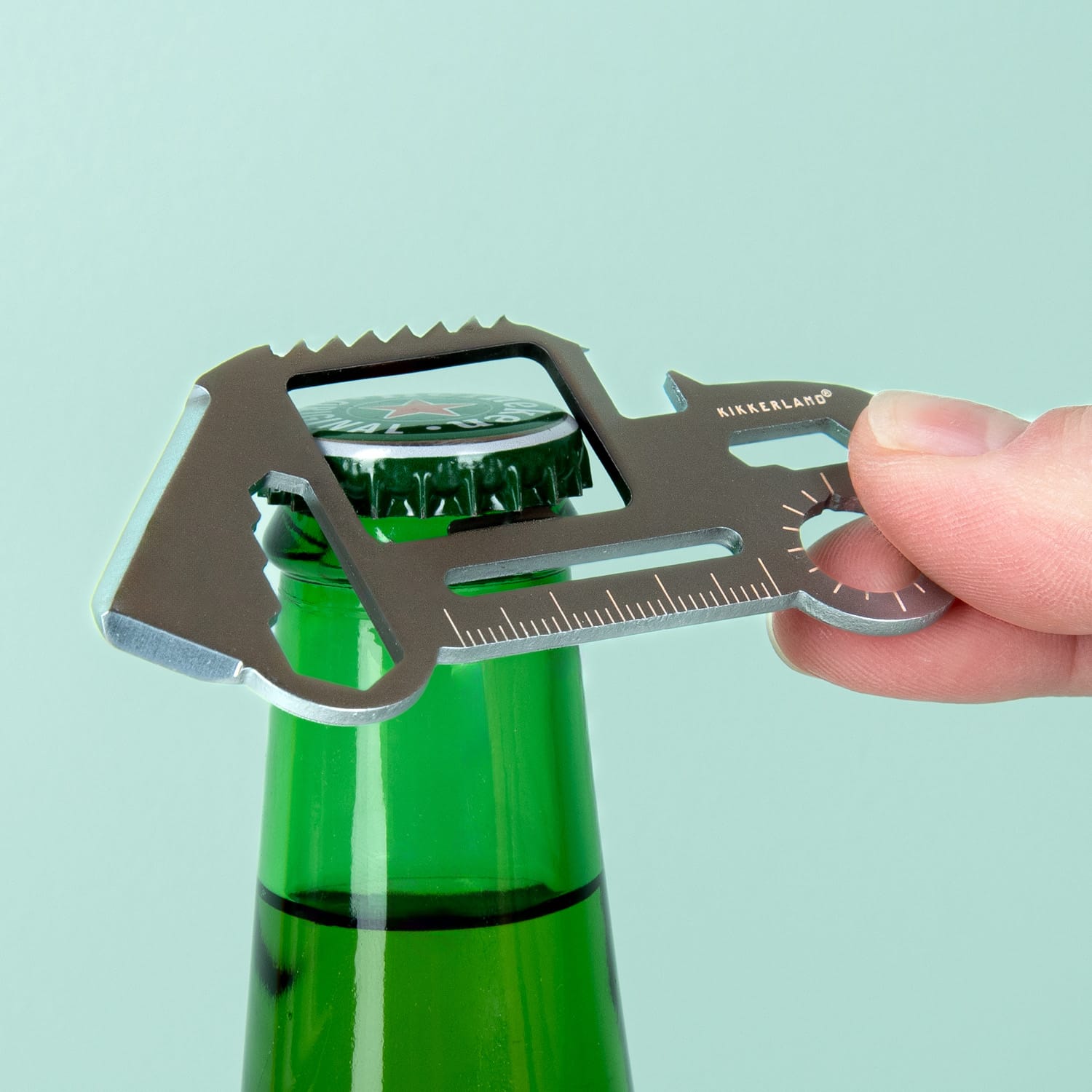 Voor de kampeerder die liever het zekere voor het onzekere neemt of de wandelaar die regelmatig verdwaald. Deze Auto survivaltool van Kikkerland houdt je op het juiste pad en zo niet, dan kun je in elk geval een blikje bonen verwarmen. De multitool bevat zowel een zaagje om de tak voor het kampvuur af te zagen als een blikopener. Ook heeft ‘ie een tool waarmee je de richting kunt bepalen, een flesopener, een mesje, nijptang, liniaal, moersleutel en schroevendraaier. Hang de survivaltool aan je sleutelbos en jij kunt je redden in de ruige natuur.
