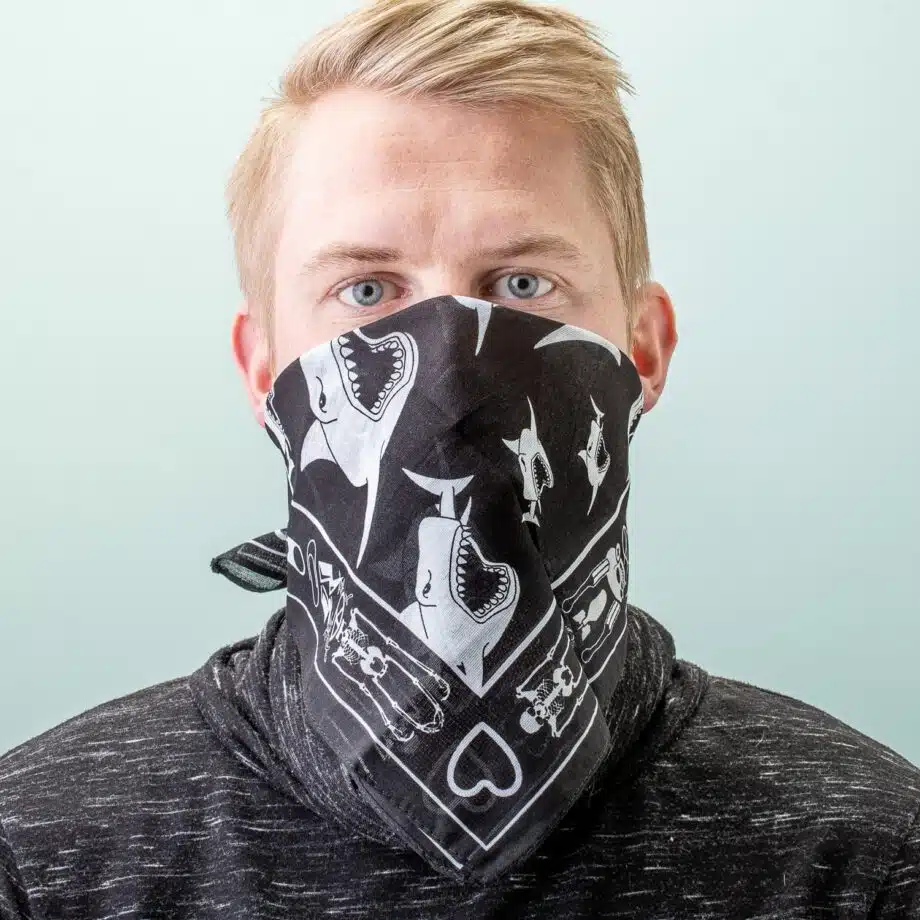 Een bandana is multifunctioneel: je kunt hem dragen als haarband, zweetband om je hoofd of pols en natuurlijk als mondmasker. De Bandana van Kikkerland is ontworpen door Studio Job. Hij is gemaakt van 100% katoen en heeft allerlei coole dessins, zoals een folklore print, haaienprint, spetter print en tattoo print. Ook als mondkapjes niet meer verplicht zijn, kun jij de bandana blijven gebruiken.