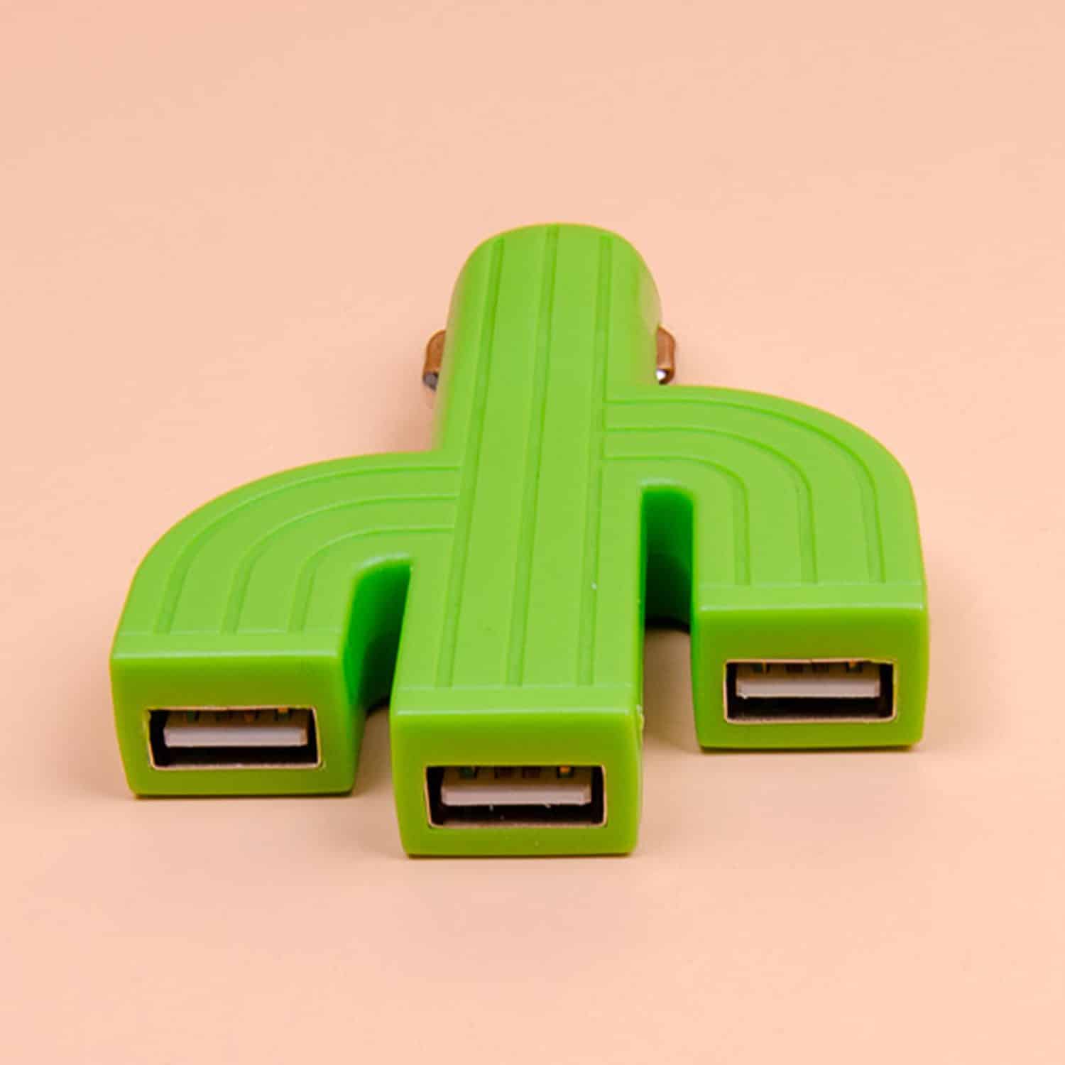 Met de 3-poort USB autolader kun je op een supersnelle en handige manier al je apparaten opladen in je auto. Dat is tegenwoordig geen overbodige luxe meer. En dan hebben we het nog niet eens gehad over het grappige en coole uiterlijk van de autolader. De groene USB autolader heeft de vorm van een cactus. De Cactus USB autolader met 3 poorten koop je online bij Ditverzinjeniet.
