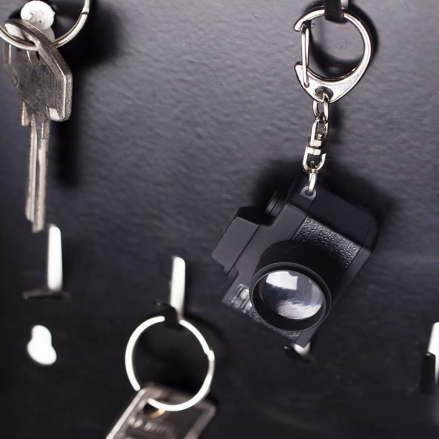 Maak je het liefst de hele dag selfies en begin je al te lachen zo gauw je een camera ziet? Dan is de Camera sleutelhanger van Kikkerland echt iets voor jou. Deze sleutelhanger met camera lijkt op een professioneel apparaat, maar hij kan helaas geen echte foto’s maken. Je kunt wel doen alsof. Als je op het knopje drukt, dan flitst het ledlampje van de camera wel en maakt hij een sluitergeluid. Handig als je het sleutelgat niet kunt vinden!