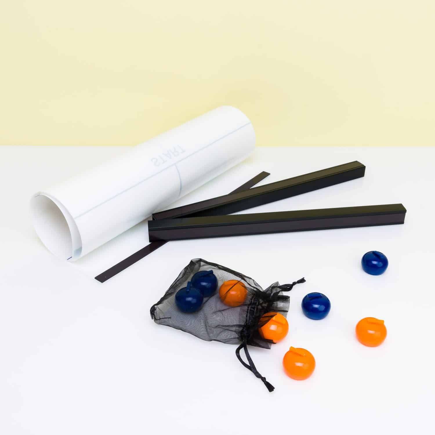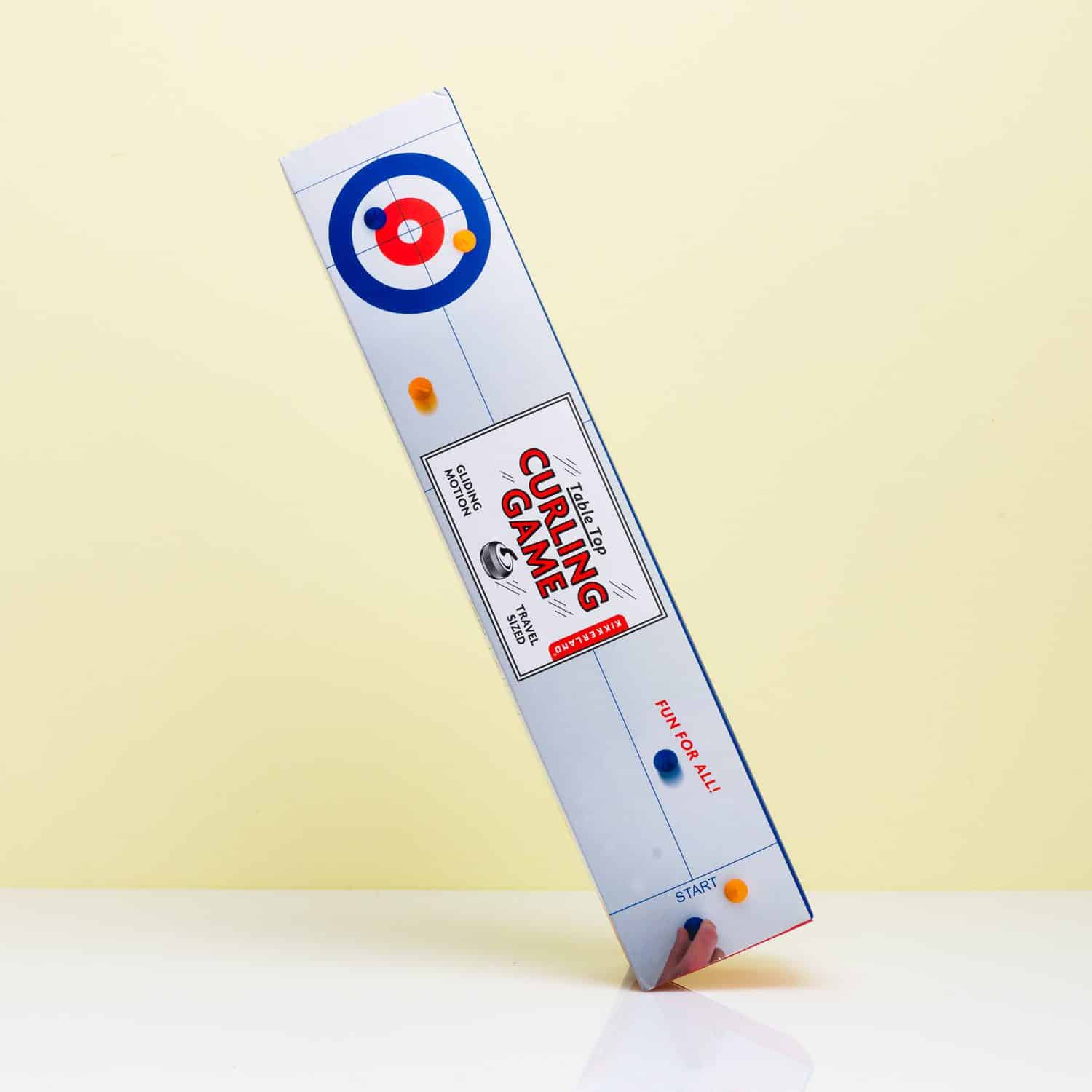 Het is één van de bijzonderste sporten tijdens de Olympische Winterspelen: curling. En vanaf nu kun je het ook thuis of op je werk doen. Met de Curling Game voor op tafel van Kikkerland heb je alles wat je nodig hebt. Speel het op vakantie of in de schoolkantine. Het enige wat je nodig hebt is een glad oppervlak waar de mat van 120 x 28 centimeter op kan liggen. In de set zit een mat, die de baan vormt. Daarnaast krijg je 8 stenen, twee magnetische strips en een stoffen zak om alles in op te bergen. Met dit curling spel hoef je niet te staan kleumen op het ijs: je doet het gewoon vanuit je warme huis. Wie daag jij uit om een potje te spelen?