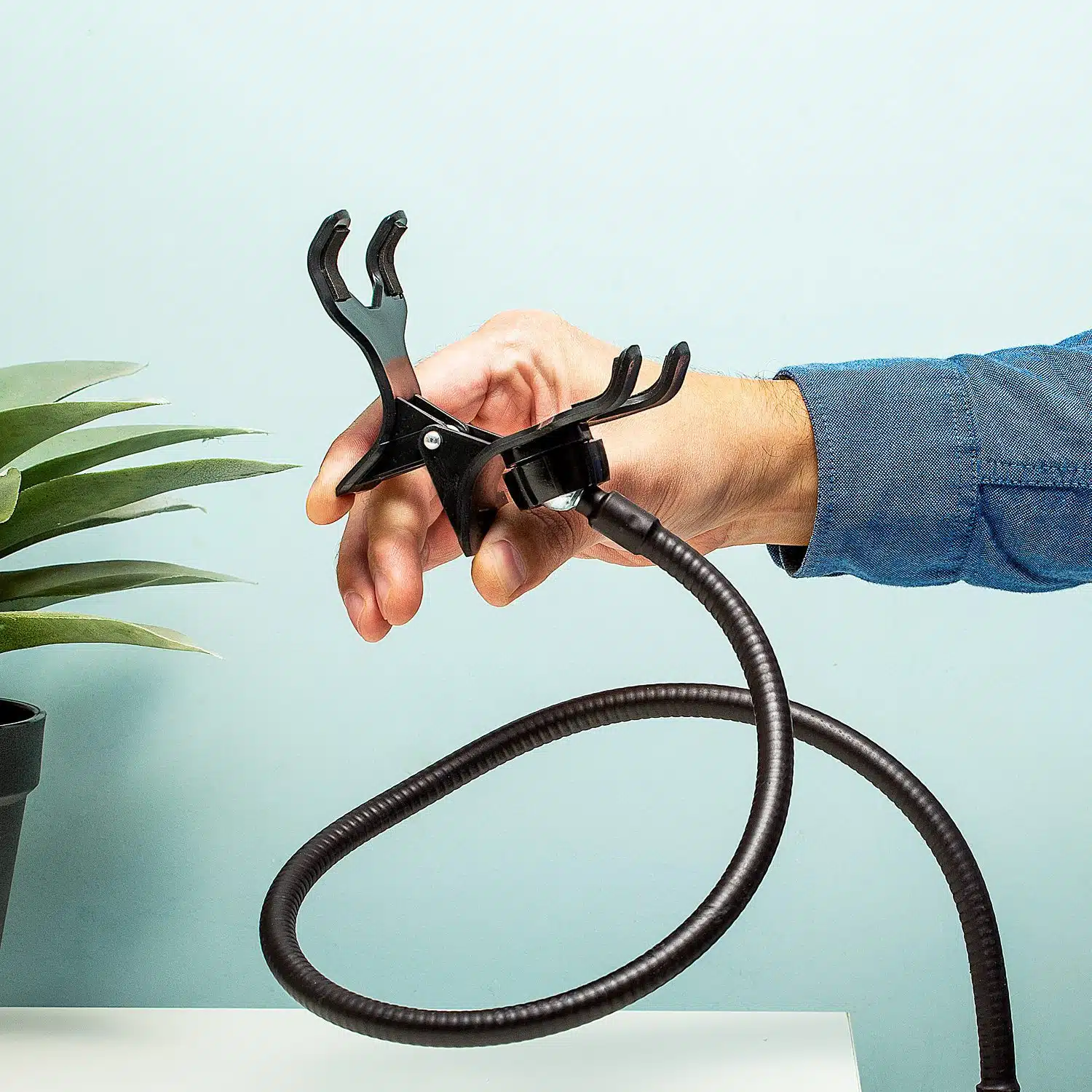 Vind jij het soms vervelend om je smartphone lang vast te houden wanneer je filmpjes aan het kijken bent of wanneer je een goede (onbewogen) foto wilt maken? De Flexibele smartphonehouder van Kikkerland maakt dit allemaal een stuk makkelijker. Bevestig je telefoon in de houder en met de klip kun je hem zo aan het tafelblad vastklemmen.