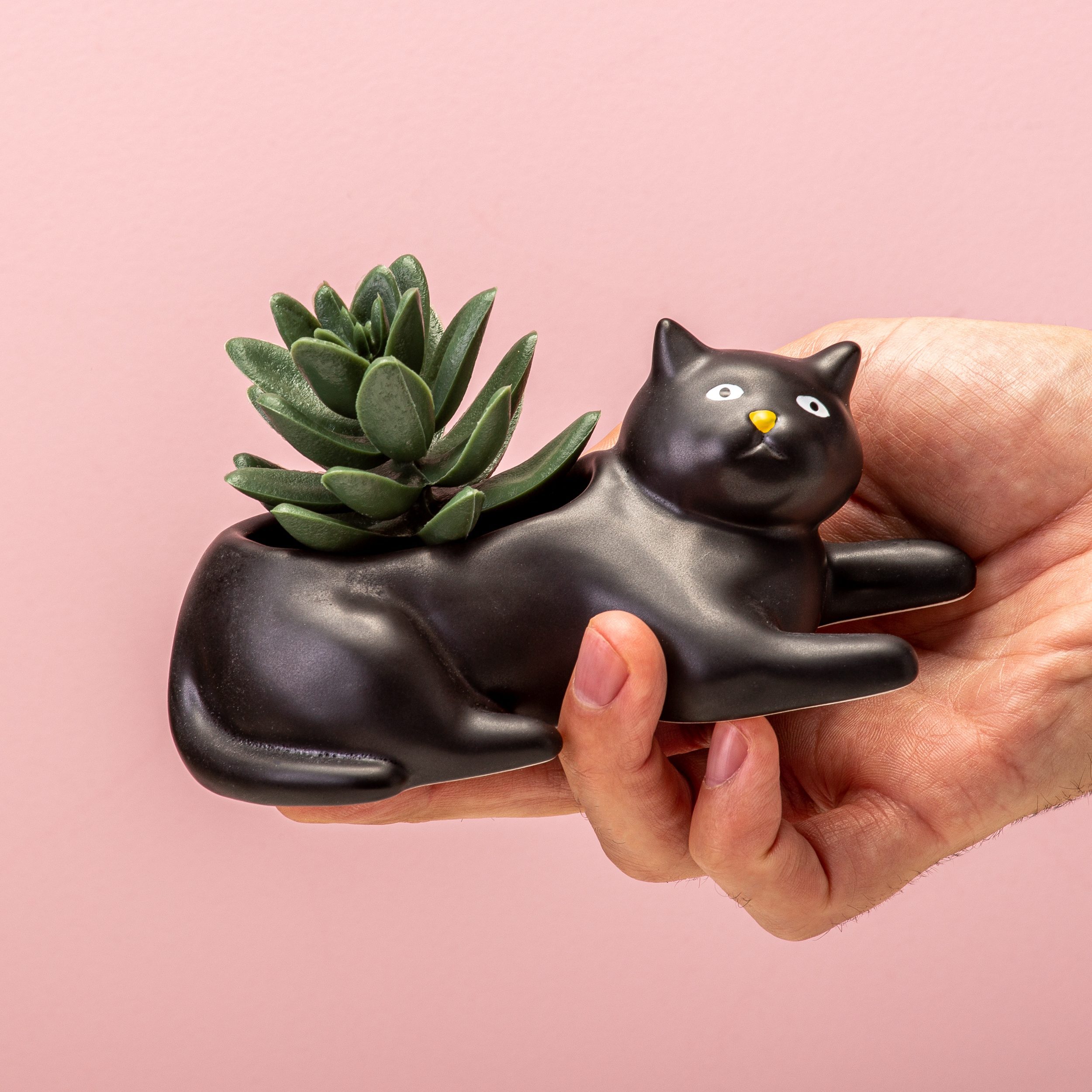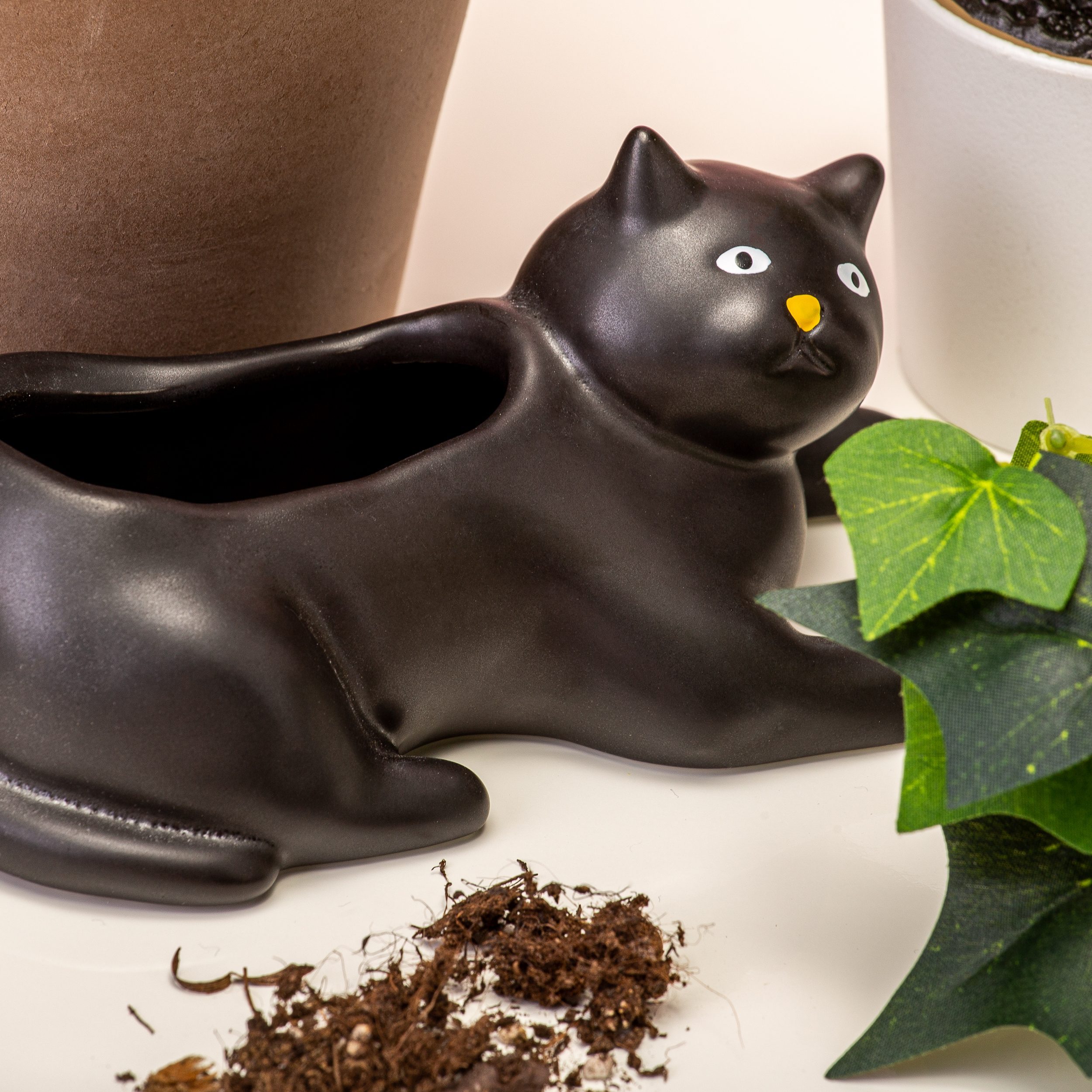 Ben jij dol op huisdieren en is er niks waarmee je je liever omringt? Dan is de Huisdier bloempot van Kikkerland heel geschikt voor jou. Deze bloempot, in de vorm van een teckel of een zwarte kat, vrolijkt elke ruimte op. Zet bijvoorbeeld een aantal kleine vetplantjes of cactussen in het lange lichaam van de teckel. Of kies voor een vrolijke pannenkoekenplant in de poezen bloempot. Leuk voor in je vensterbank, op de salontafel, maar ook voor op een toonbank, bureau of in de kinderkamer. De bloempot is gemaakt van porselein.