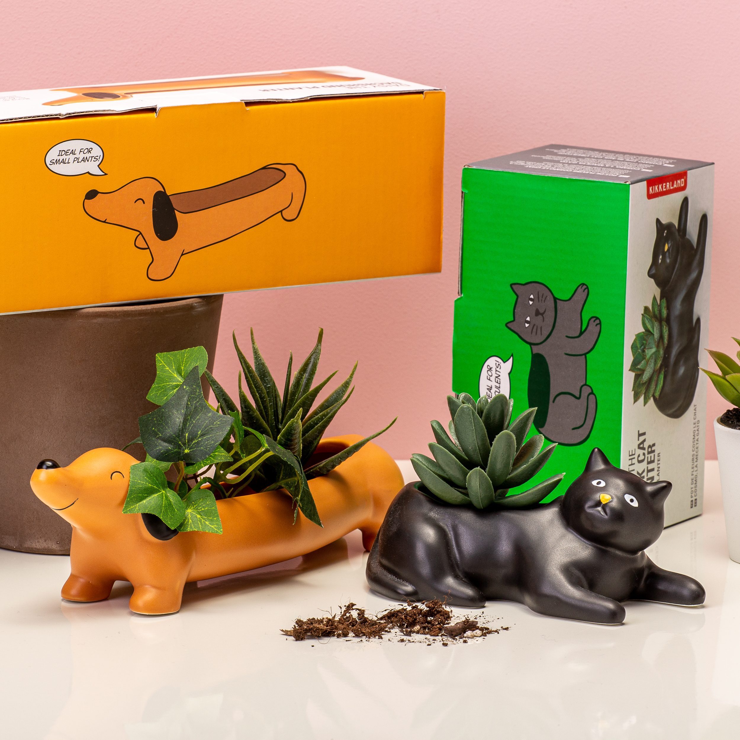 Bloempot in de vorm van teckel of kat van Kikkerland