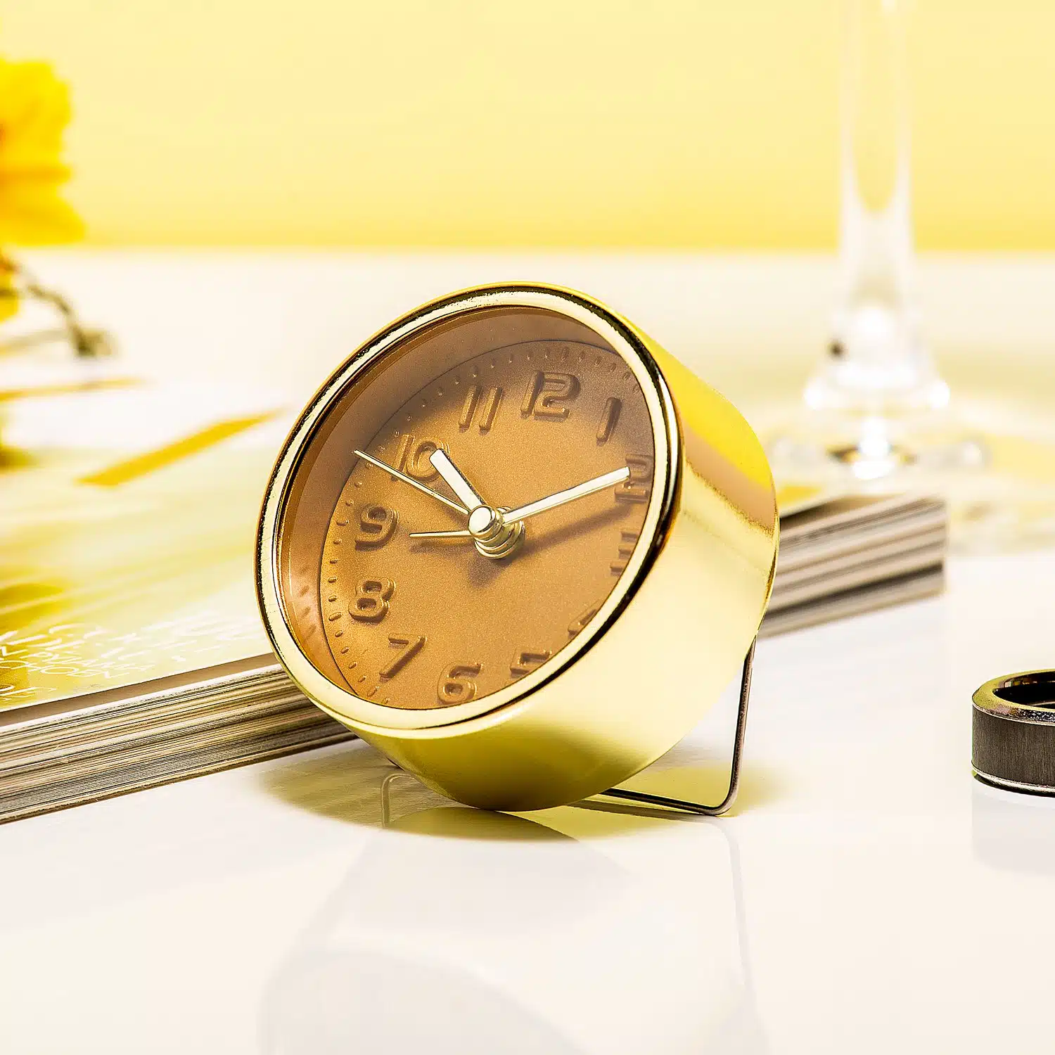 • Koperkleurige of goudkleurige mini wekker