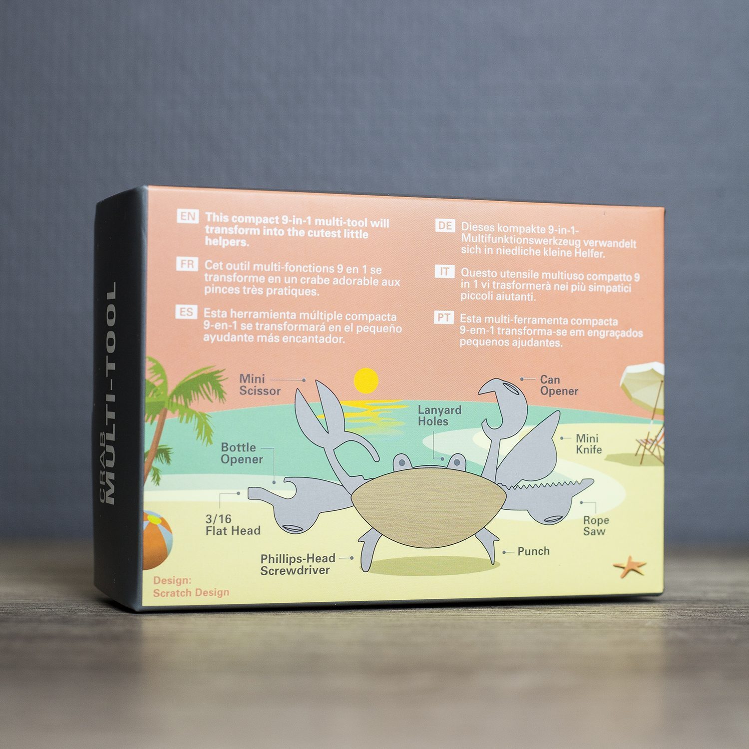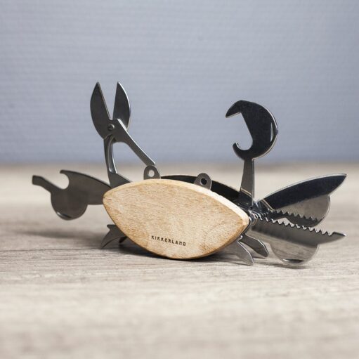 Heb je een helpende klauw nodig? Met de Krab 6-in-1 multitool van Kikkerland heb je een paar extra scharen om de kleine klusjes in huis te klaren. Deze gave multitool, in de vorm van een krab, is een praktisch product met een hilarische look. Aan de scharen van de krab zit onder andere een mini schaar, een flesopener, een platte schroevendraaier, een blikopener, een mini mes en een touwzaag. De klauwen zijn inklapbaar zodat ‘ie ook veilig in je broekzak of jaszak meegenomen kan worden.
