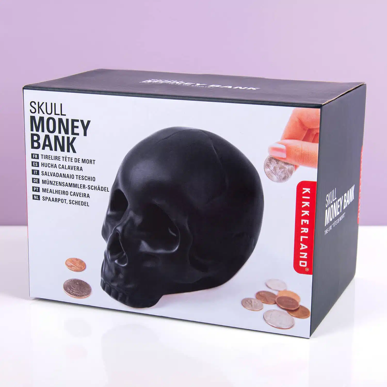 Je geld kun je niet meenemen in het hiernamaals, maar met deze schedel spaarpot van Kikkerland bewaar je je centjes ironisch genoeg in het symbool van de dood. Voor sommigen zal deze manier van sparen een beetje luguber overkomen, maar wie er met een open blik naar kijkt, zal er de humor zeker van inzien. Door zijn zwarte kleur en hoogwaardig keramiek, is deze schedel ook nog eens een bijzondere blikvanger in je interieur. Zet hem in je woonkamer of bureau en je denkt elke keer weer aan je spaardoel.