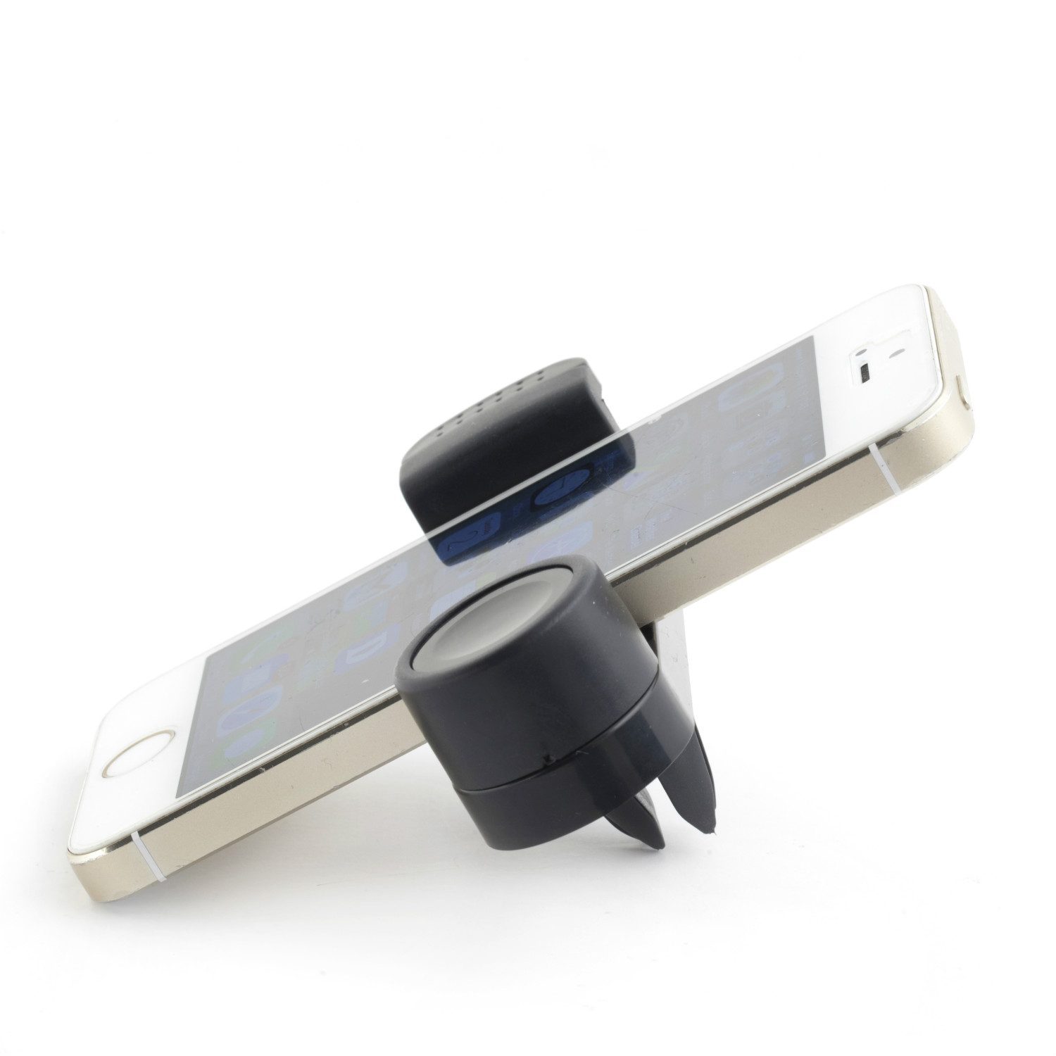 De Telefoonhouder voor autoventilator van Kikkerland is echt een uitkomst als je geen lelijke kringen op je raam wilt van een telefoonhouder met zuignap. De houder is makkelijk en op twee manieren in de airco te pluggen: geschikt voor een dunner en dikker ventilatierooster. De Telefoonhouder kan gebruikt worden voor de meeste ventilators en ook voor de meeste smartphones (8,9-16 cm). De kunststof houder kun je 360 graden roteren zodat je je telefoon horizontaal of verticaal kunt gebruiken. De Telefoonhouder voor autoventilator van Kikkerland koop je online bij Ditverzinjeniet.