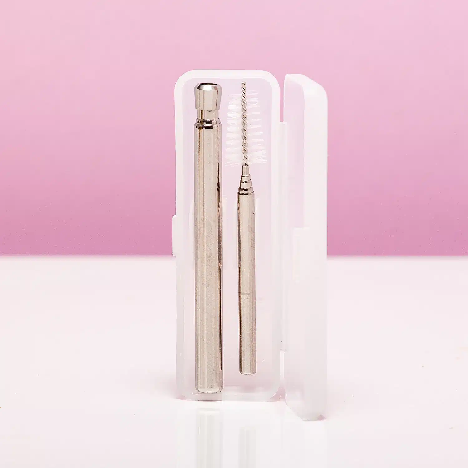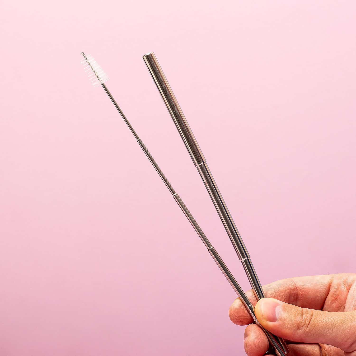 Dat plastic rietjes steeds meer uit het straatbeeld verdwijnen is een heel positieve ontwikkeling. Maar niet voor iedereen. Voor kinderen of mensen met een handicap is een rietje soms onmisbaar. En anderen vinden het gewoon fijn om een rietje te gebruiken, omdat het zo feestelijk staat in een cocktail. Daarom komt Kikkerland met het Uitschuifbare rvs rietje in reisverpakking. Dit handige rietje is een milieuvriendelijk alternatief voor plastic rietjes. Het is inschuifbaar en zit in een reisetui, waardoor je het eenvoudig mee kan nemen onderweg. Naast het rietje zit er ook een telescopisch borsteltje in de verpakking, waarmee het rietje te reinigen is.