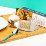 Fijngesneden knoflook zonder te snijden? Dat is een fluitje van een cent met de Vis knoflookpers van Kikkerland. Deze halfronde knoflookpers heeft de vorm van een vis. Je legt een gepeld teentje knoflook op een snijplank en drukt de pers erop. Door zijn kop en staart afwisselend heen en weer te bewegen en een beetje druk uit te oefenen, druk je de knoflook door de pers heen. Zo krijg je fijne stukjes knoflook, zonder dat je stinkende handen krijgt. Een onmisbaar item in de keuken.
