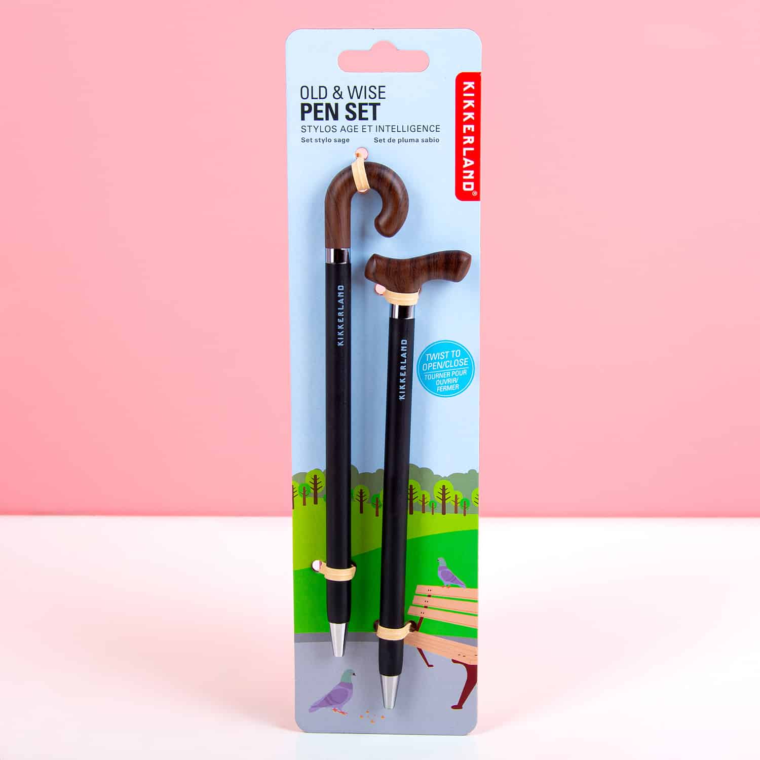 Met de Wandelstok pennen (set van 2) van Kikkerland is ouder worden helemaal niet erg. Deze stijlvolle pennen in de vorm van een wandelstok zijn niet alleen leuk om te zien, ze schrijven ook heerlijk. Reken maar dat je collega’s ineens meer respect voor je zullen tonen als je deze pennen in de hand neemt. De pennenset wordt geleverd in een set van twee. Een ronde en een hoekige variant, uitgevoerd in chique bruine en zwarte kleuren. Een ideaal Abraham cadeau voor iemand die vijftig jaar wordt. Maar ook als je nog niet op leeftijd bent, zijn deze pennen natuurlijk een leuke en originele aanvulling op je schrijfwaren.