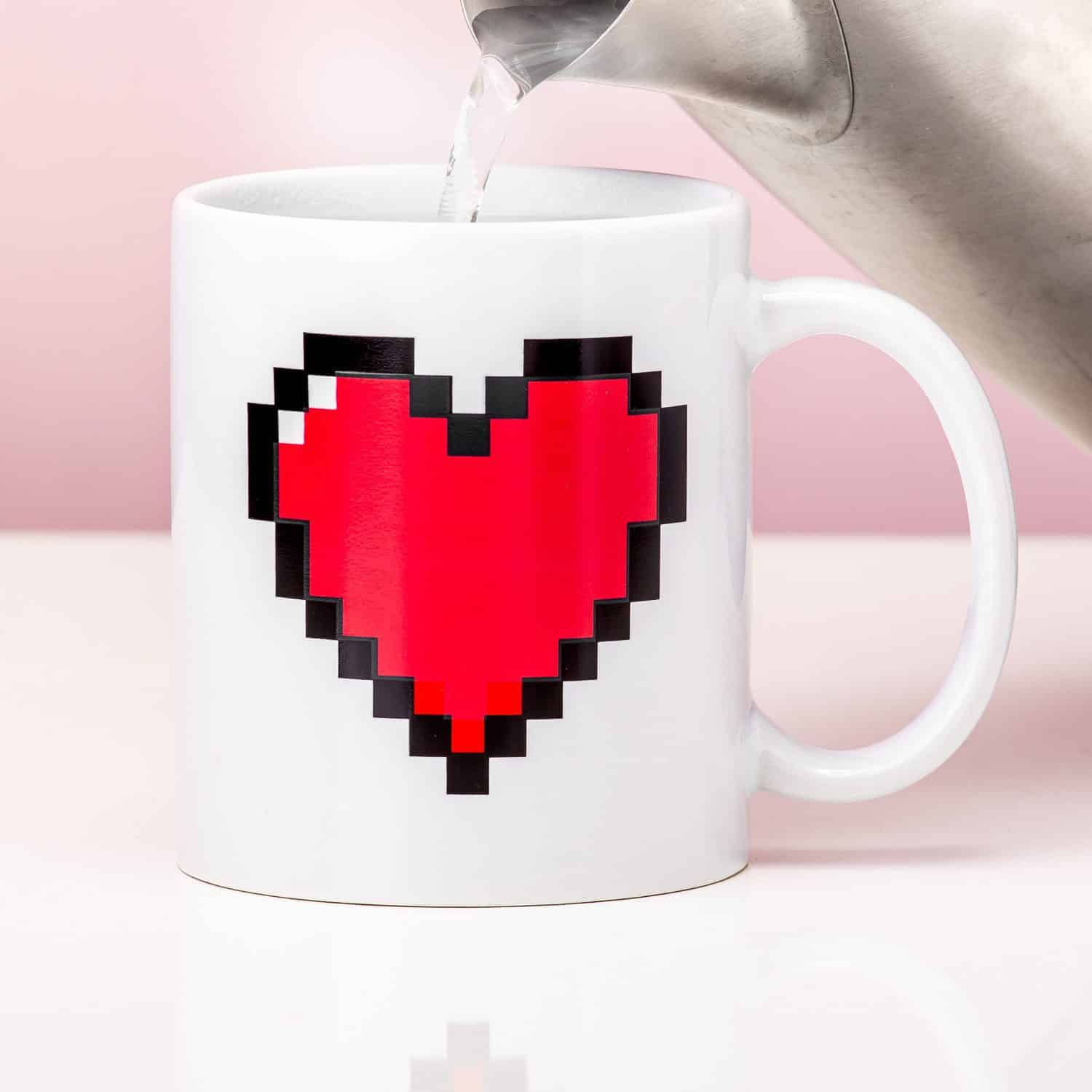 Warmtegevoelige mok pixel hart