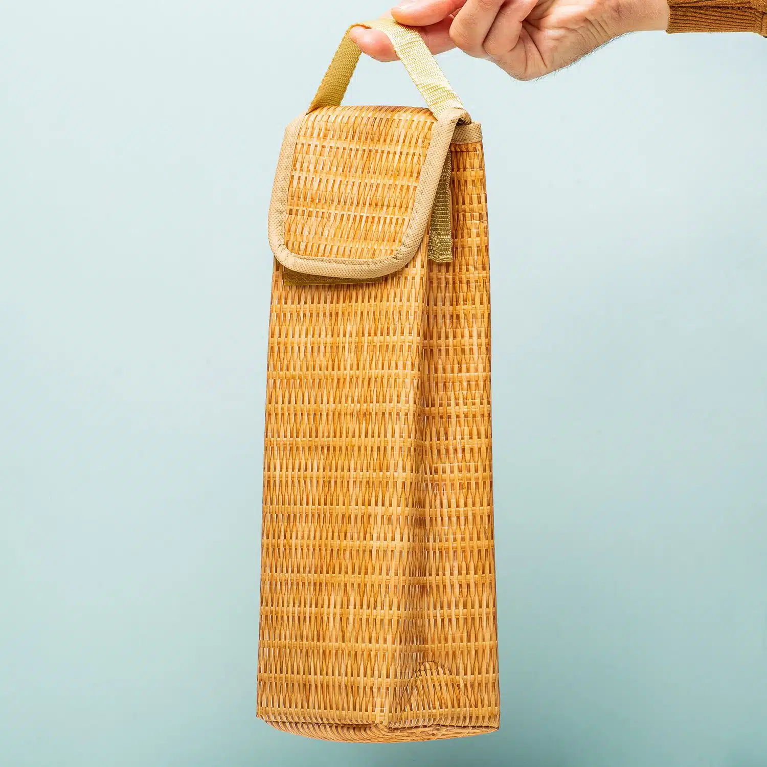 Balancerend op de fiets of gewoon in de rugzak terwijl je naar het festivalterrein loopt: de wijnkoeltas kan overal mee naartoe. Door de schouderband kun je hem makkelijk dragen en door het klittenband aan de bovenkant sluit de tas ook goed. Zo zorg je ervoor dat de wijn koud blijft. Door de wicker-print lijkt het net alsof de tas gemaakt is van riet. Hij is 35.56 x 10.16 x 10.16 cm groot.