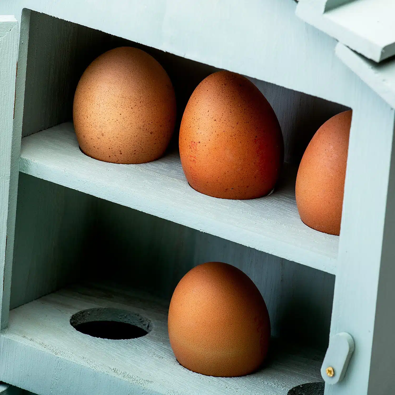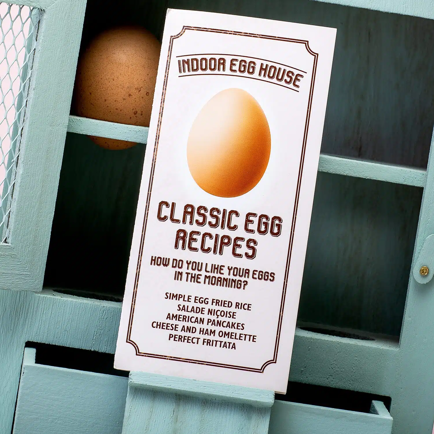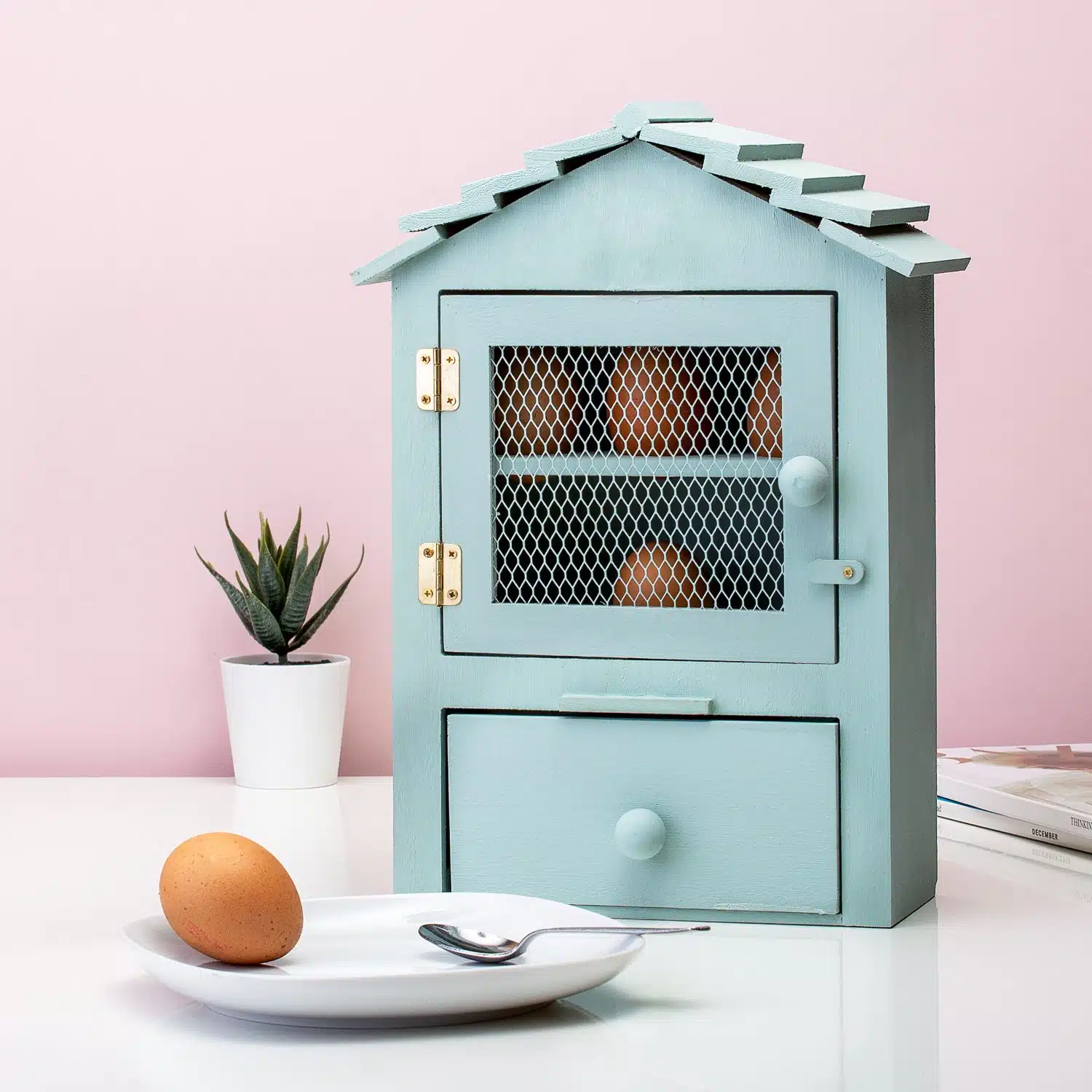 We wonen niet allemaal op een boerderij, maar met de Kippenhok eihouder krijg je toch die landelijke boerderijstijl in huis. Deze grappige houder – die is ontworpen om eieren in te bewaren – heeft de vorm van een kippenhok! Het houten kippenhok heeft bovenin twee legplanken met ruimte voor zes eieren. Onderin zit een lade waar je eierdopjes in op kunt bergen. En het loopplankje is een leuk detail, maar het is beter om de eieren en niet van naar beneden te laten rollen.